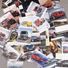 A moving box full of mixed car brochures and car folders from the car brand Ford.
