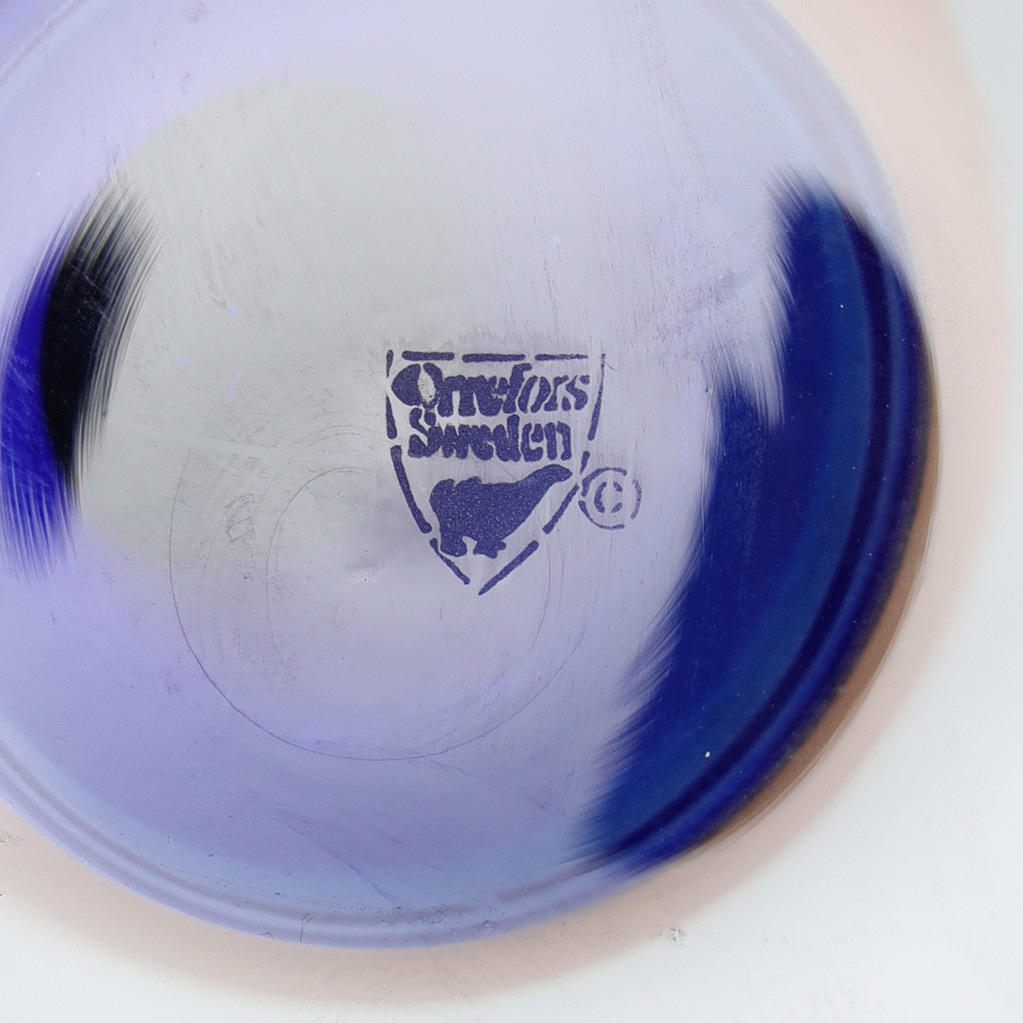 Clear and blue glass. Etched orrefors mark on the bottom. Height about 29 cm.