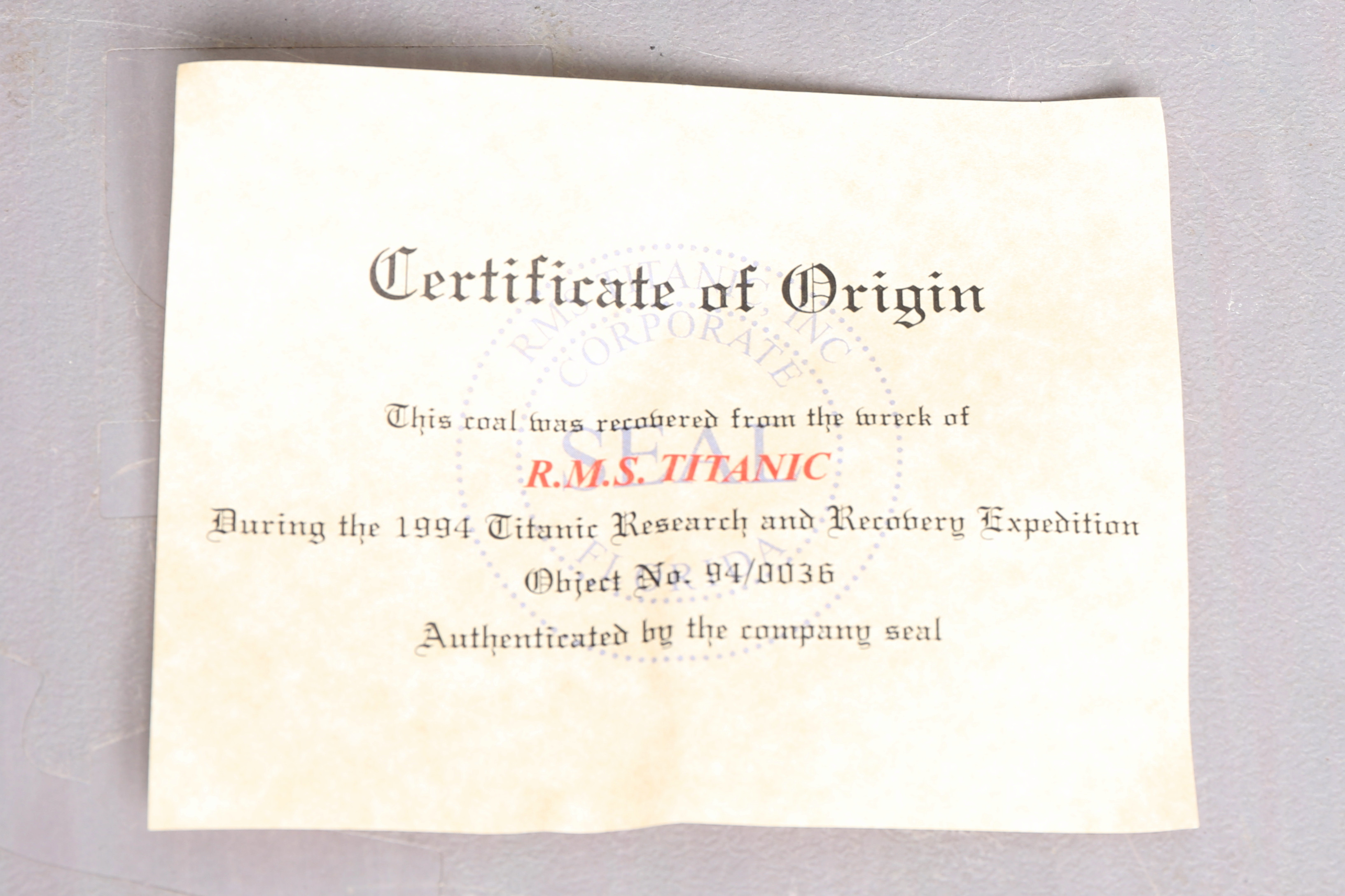 2350574. RMS TITANIC, piece of coal.