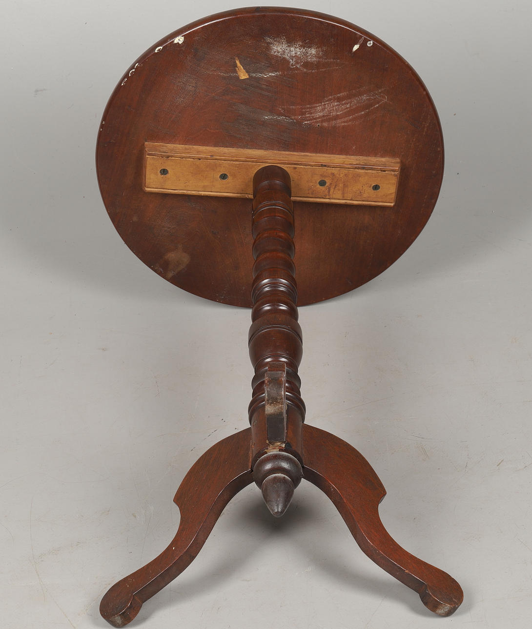 with fading, marks, scratches and wear and tea commensurate with age stabilized with screws at base.
