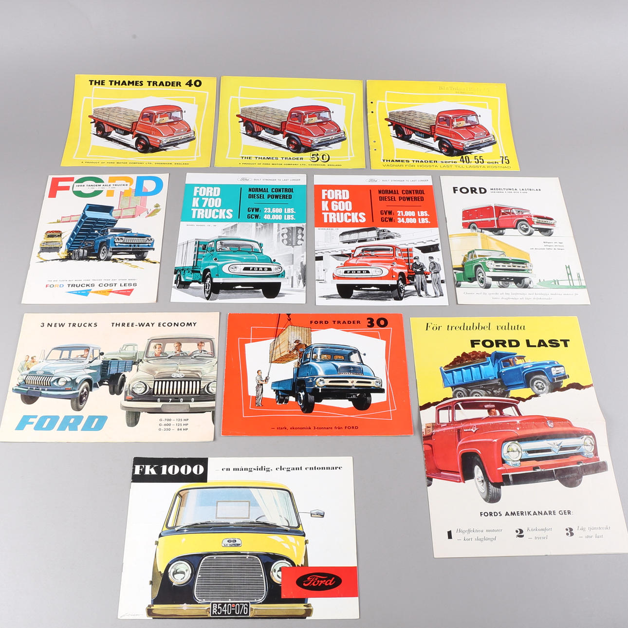 20 brochures/folders/flyers with buses and trucks from the car brand Ford.