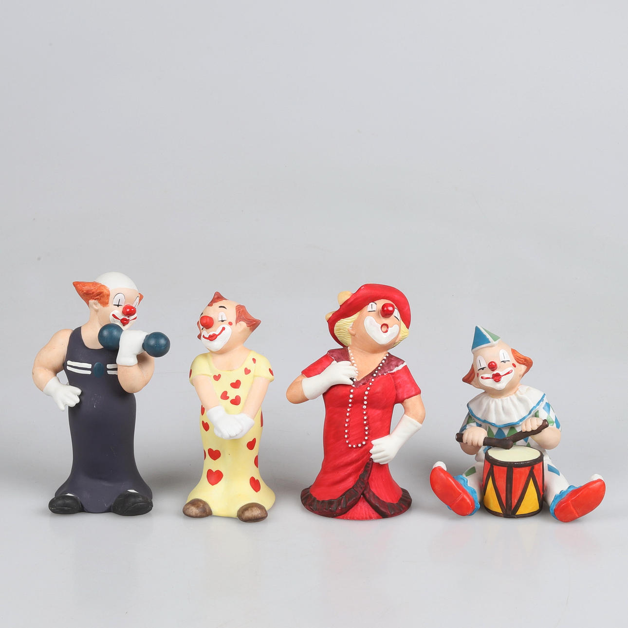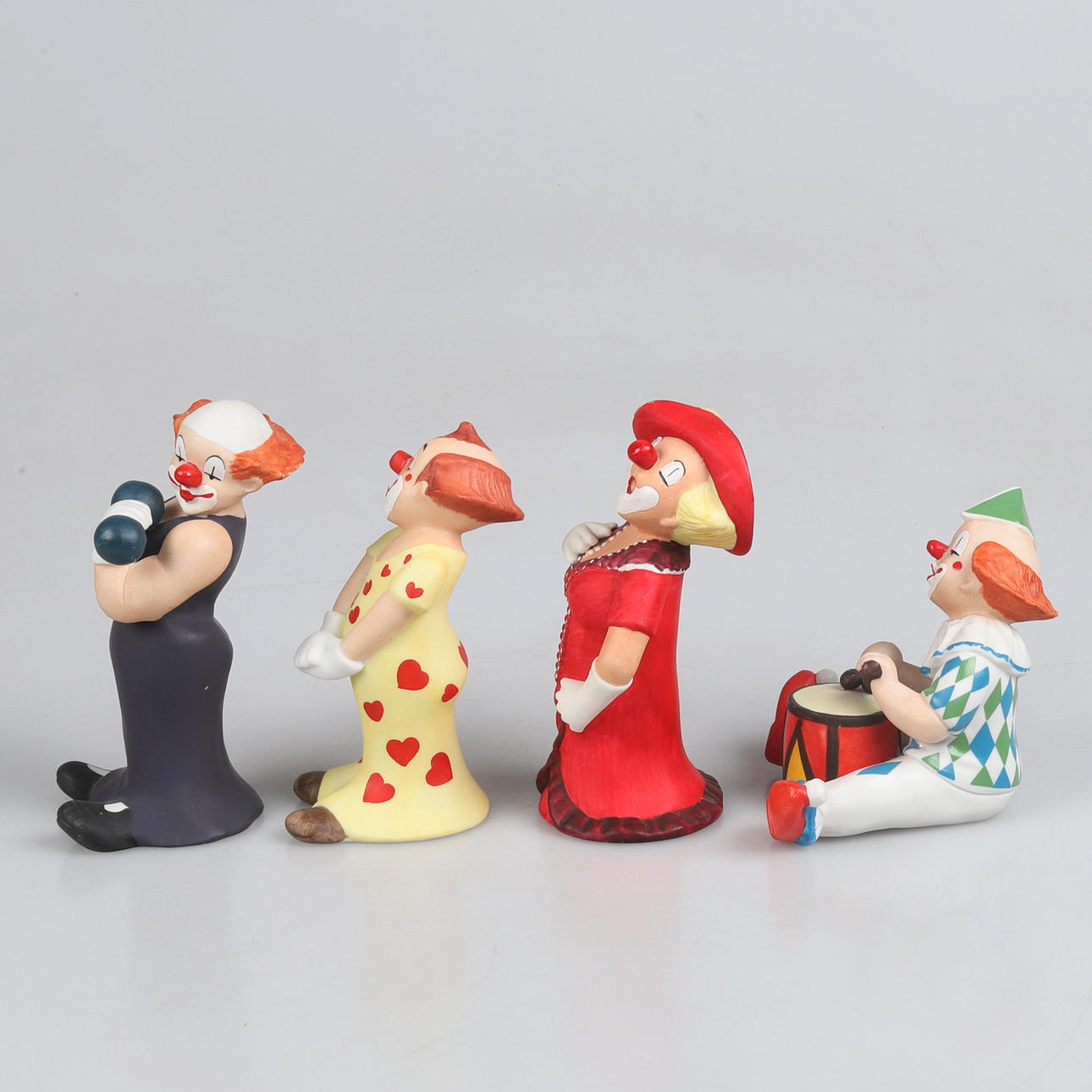 Four figurines from the series Happy Clowns, Goebel Dimensions: height 9.5 - 13 cm.