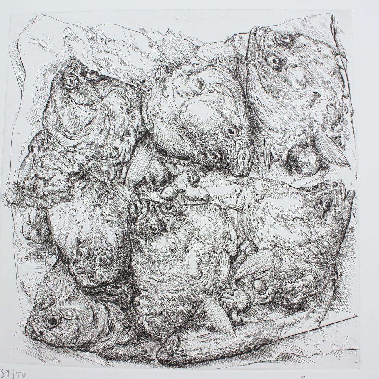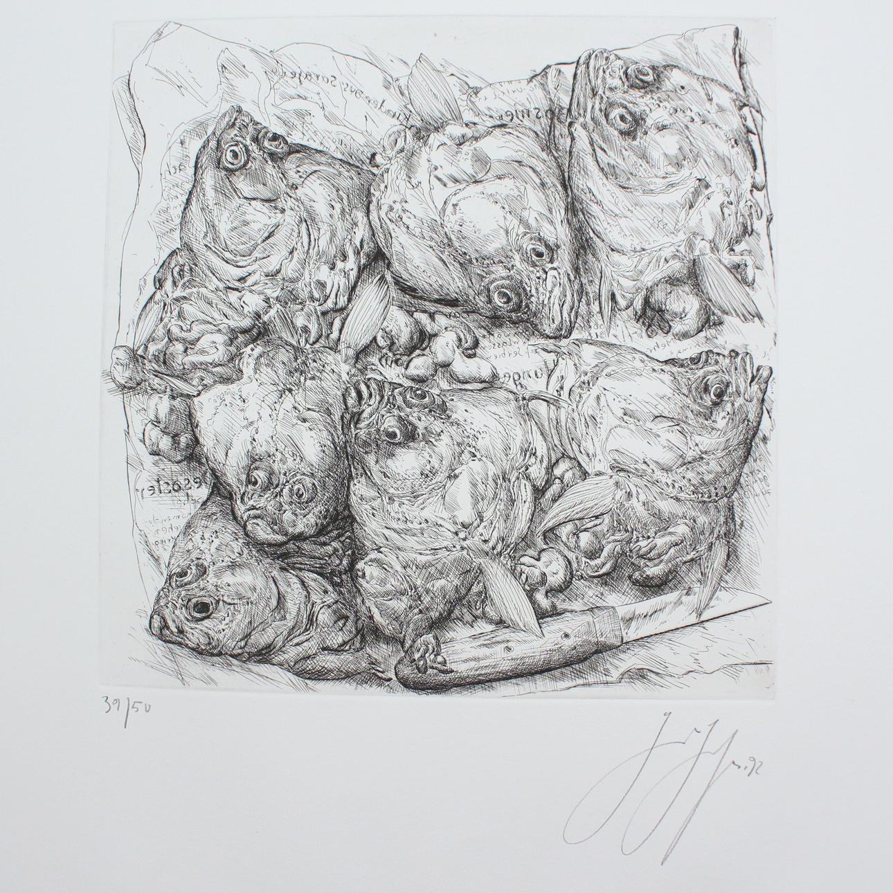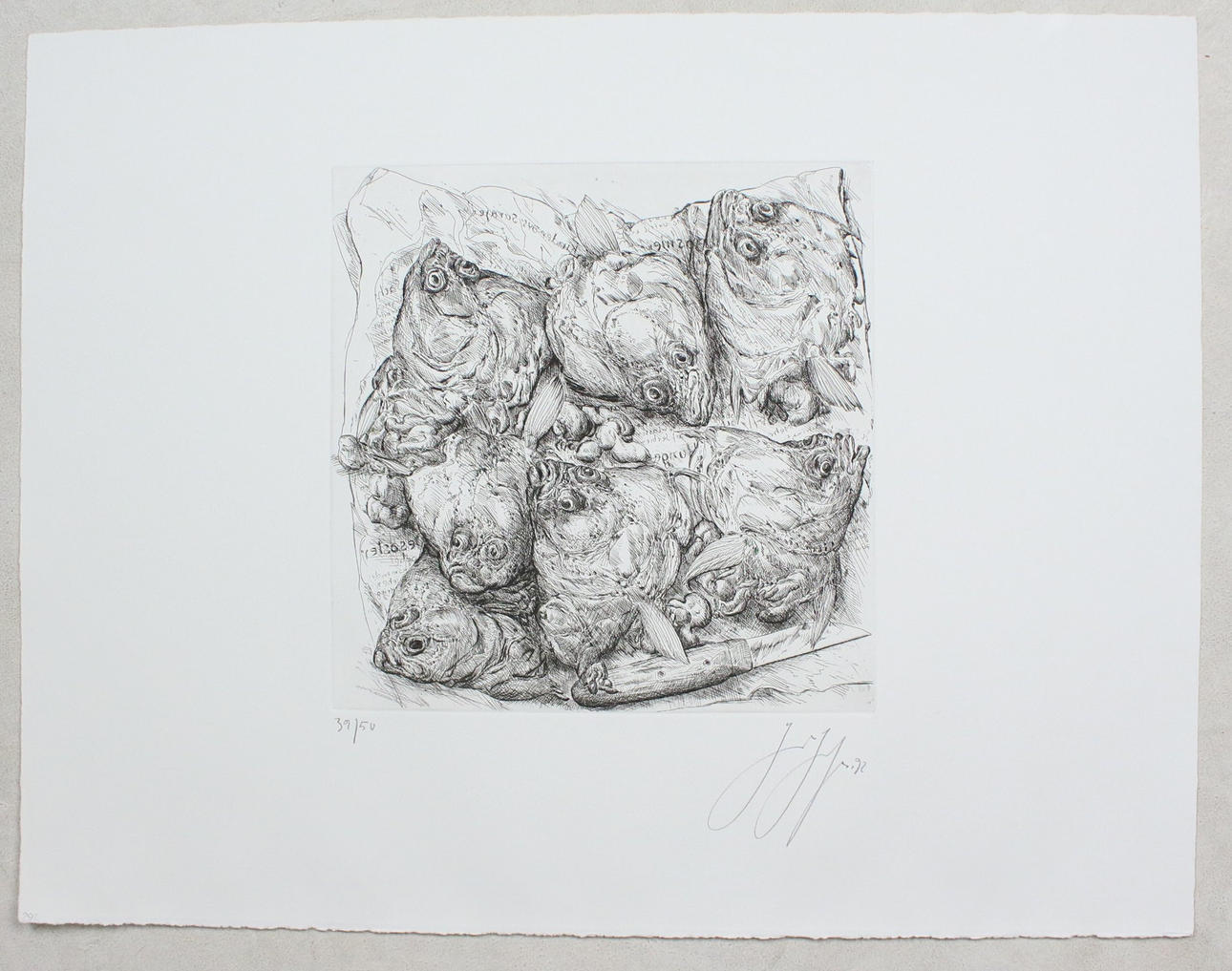Günter Grass (1927-2015), 'Fish', etching, limited, Ed. 39/50, numbered in pencil lower left and signed and dated right: '92', unframed, sheet size: 50 x 65 cm.