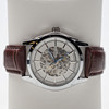 White case with visible movement and bar index. Leather bracelet. Dial approx. 35 mm.
