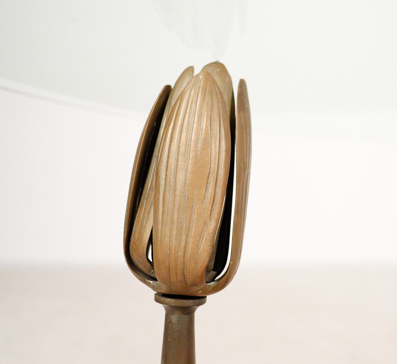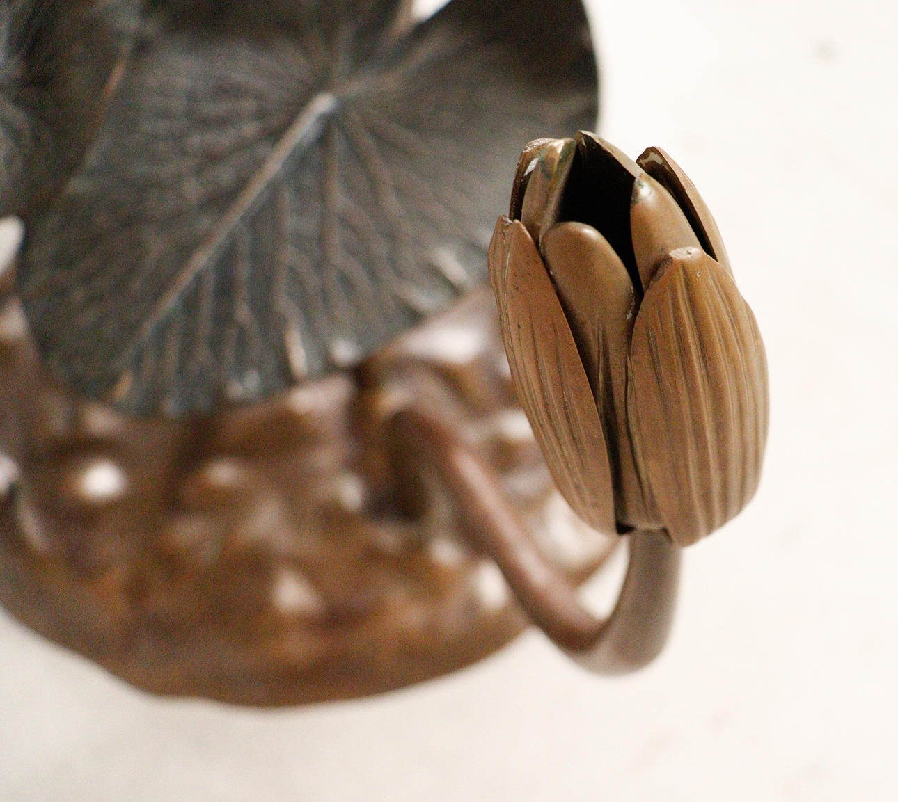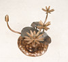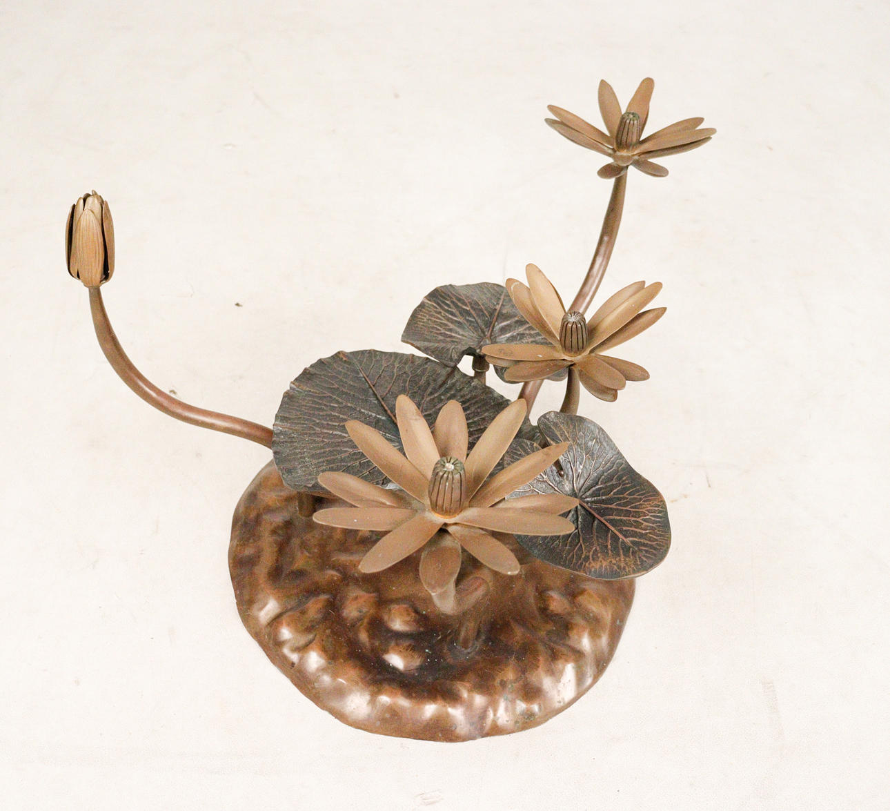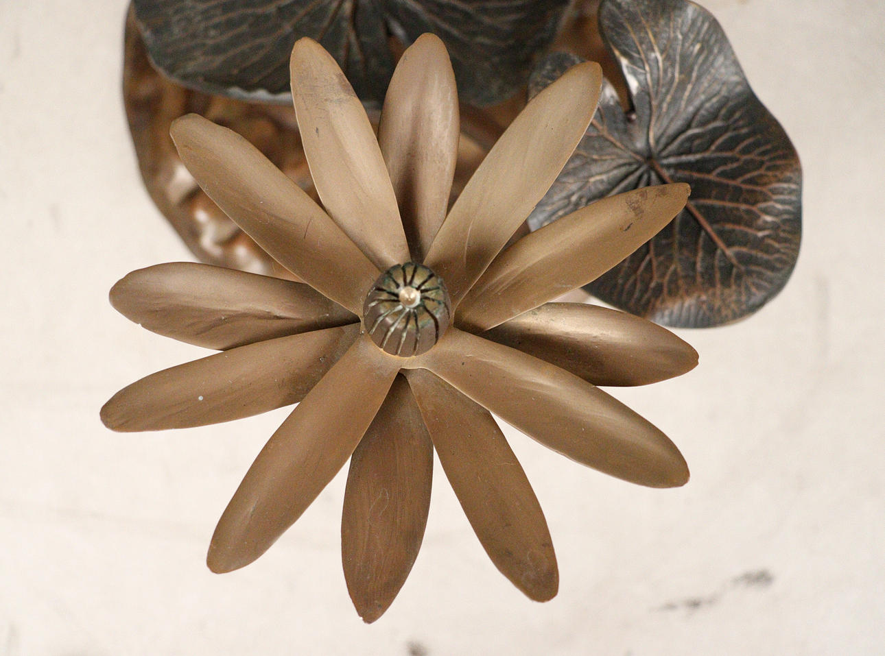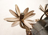 Willy Daro, coffee table, 'Lotus', 1970s, solid brass construction, dark patina, loose, round shaped glass plate, dimensions approx.: H. 42 cm, Ø: 90 cm.