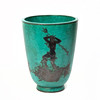 Green glazed with silver decoration, height 26.5, width 20.5 cm.