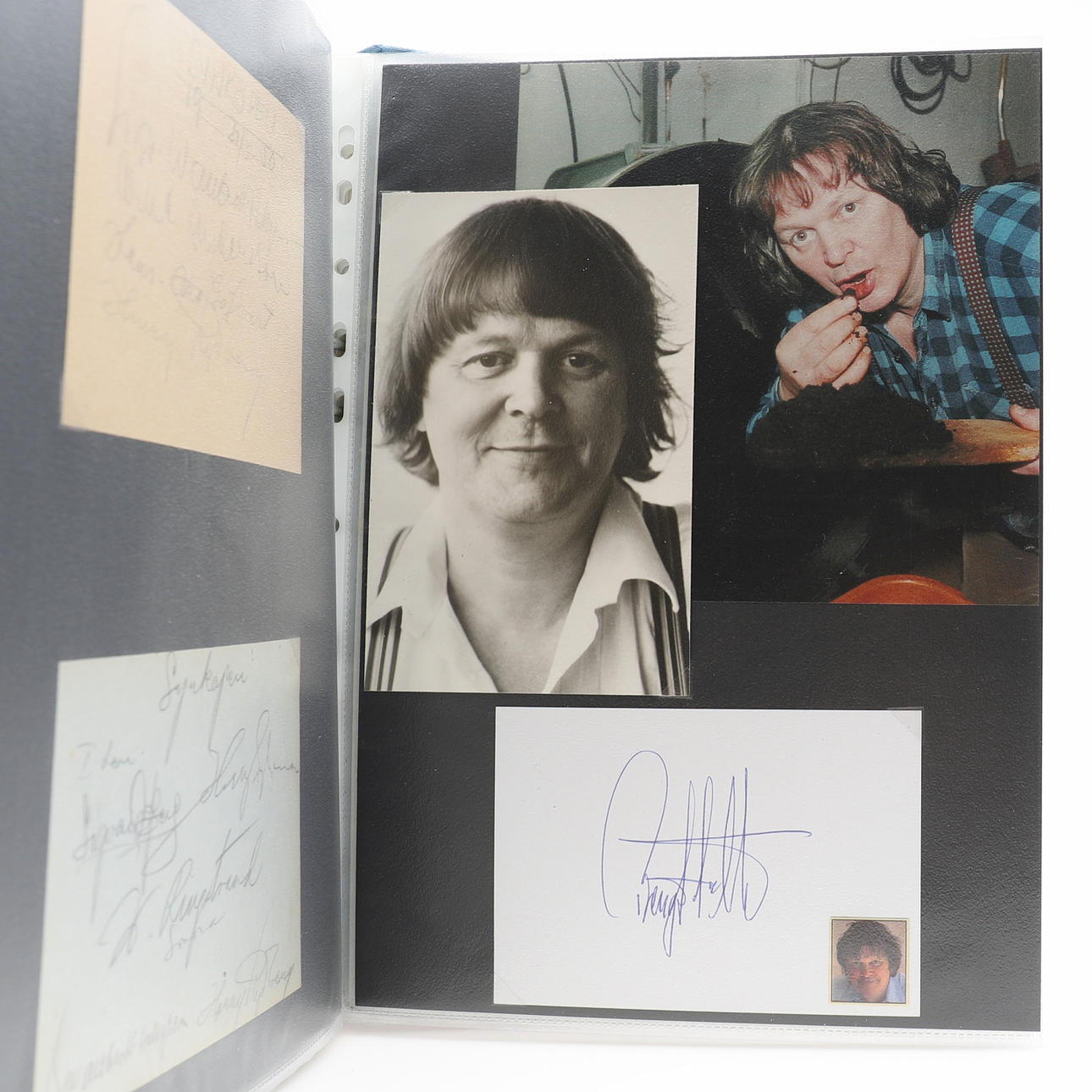 All autographs inserted with one or more pictures of the person. Contains Marika Stjernstedt, Sonja Stjernquist, Linn Stokke, Sven Stople, Yngve Stoor, Kari Storaeker, Emy Storm, Eva-Britt Strandberg, Jan-Olov Strandberg, Rose-Marie Stråhle, Hans Strååt, Ingemar Ström, Bo Strömstedt, Lasse Strömstedt, Margareta Strömstedt, Niclas Strömstedt, Paul Ströyer, Birgitta Stabbing, Runo Sundberg, Olof Sundby, Arvid Sundin, Nils Peter Sundgren, Anna Sundqvist, Frank Sundquist, Frank Sundström, Jeja Sundström, Josefine Sundström, Monica Sunnerberg, Supernatural, Jan-Öjwind Swahn. Lennart Svahn, Olov Svedlid, Doris Svedlund, Birgitta Svendén, LillBabs Svensson, Carin Swenson, Harpo (Jan Svensson), Kenneth Svensson, Siv-Inger Svensson, Håkan Swärd, Jules Sylvain, Syncopen, Bengt Sändh, Lill-Arne Söderberg, Irene Söderblom , Lena Söderblom, Åke Söderblom, Kim Söderlund, Brother Axel Söderlundh, Inga-Lill Söderman, Elisabeth Söderström, Göran Söllscher, Birgitta Södergran.