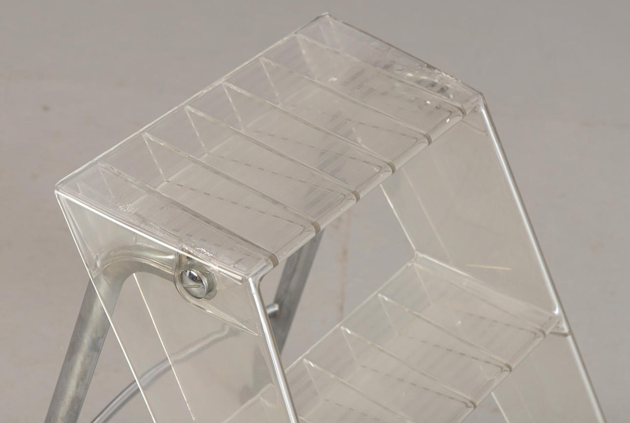 'Upper' Stepladder by Alberto Meda & Paolo Rizzatto for Kartell. Combination of chromed steel and transparent polycarbonate with non-slip steps.