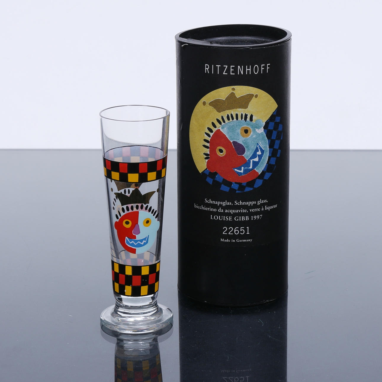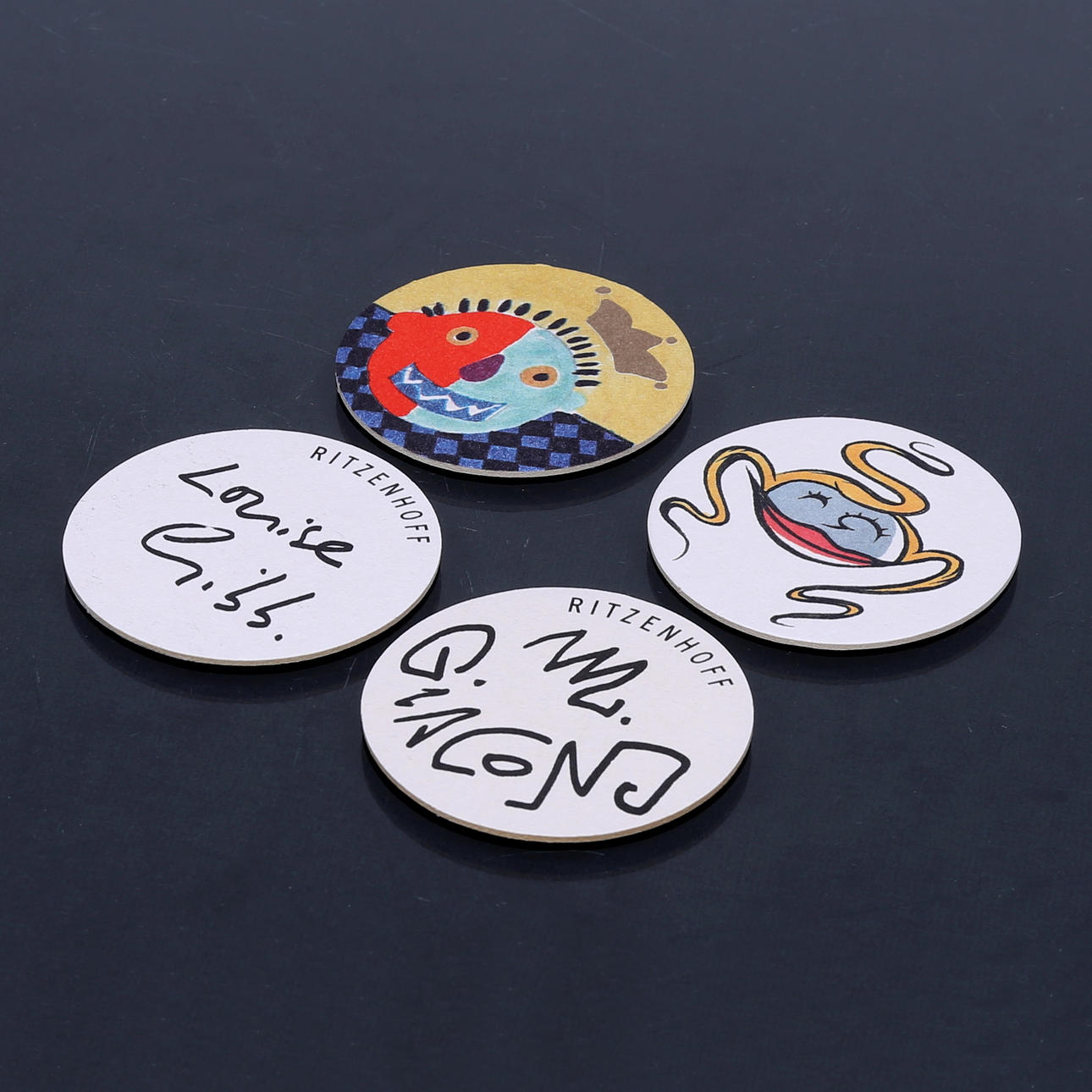 Height, approx. 11.5 cm. 10 coasters, cardboard, diameter, approx. 6 cm.