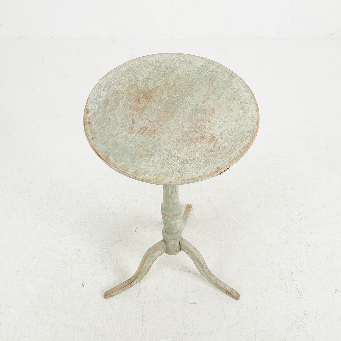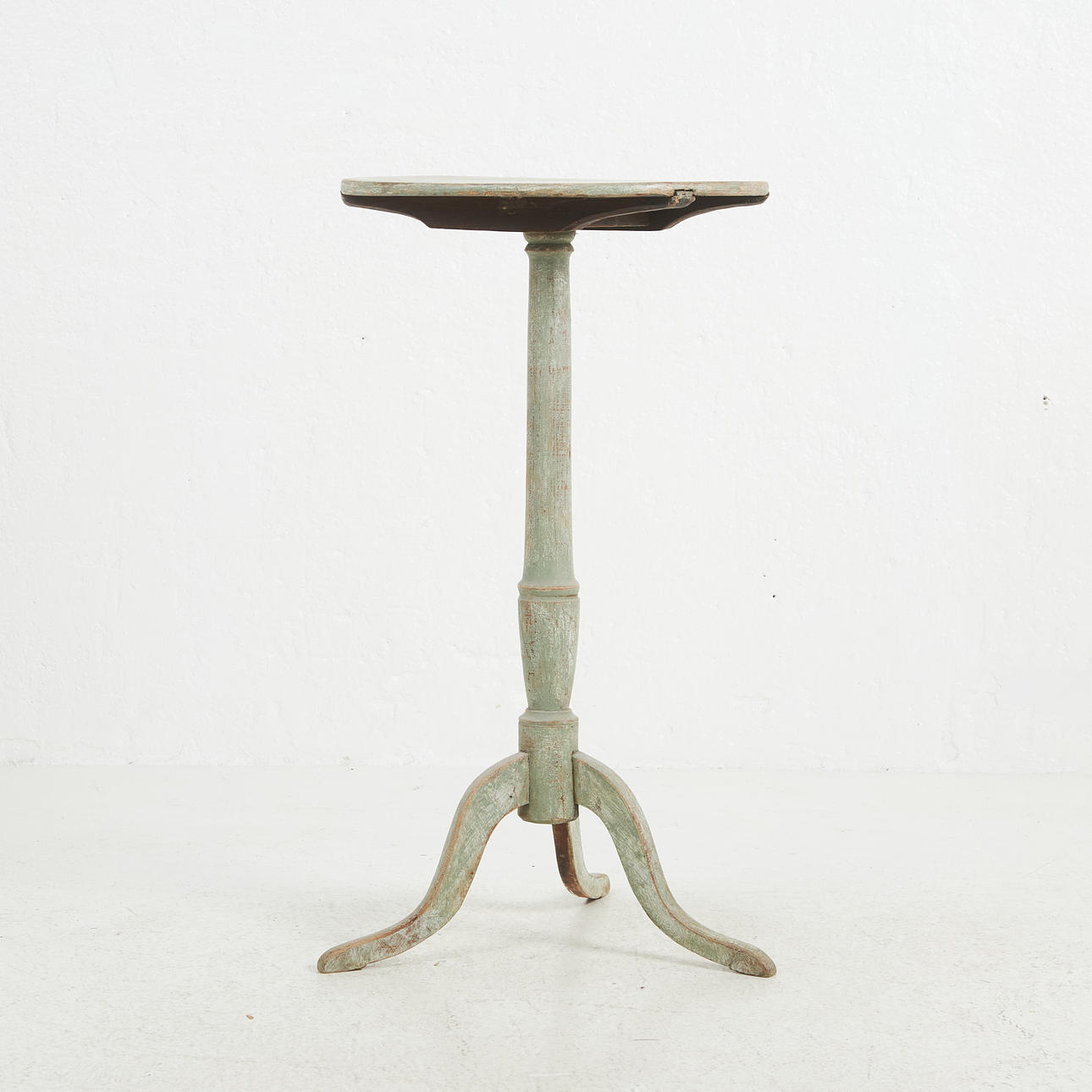 2366122. FOLDING TABLE, 1800s, three split feet, round top, painted.