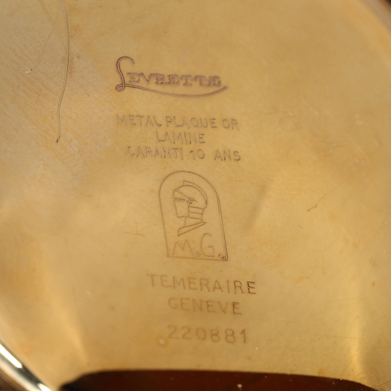 It was manufactured by Charles Wilhelm & Co. SA of La Chaux-de-Fonds, Switzerland, under their Levrette brand. Ankargån, housing number 220881. Pocket watch, gold-plated from the Art Deco period approx. 1920-1925. FHF caliber 77 15-jewel movement.
