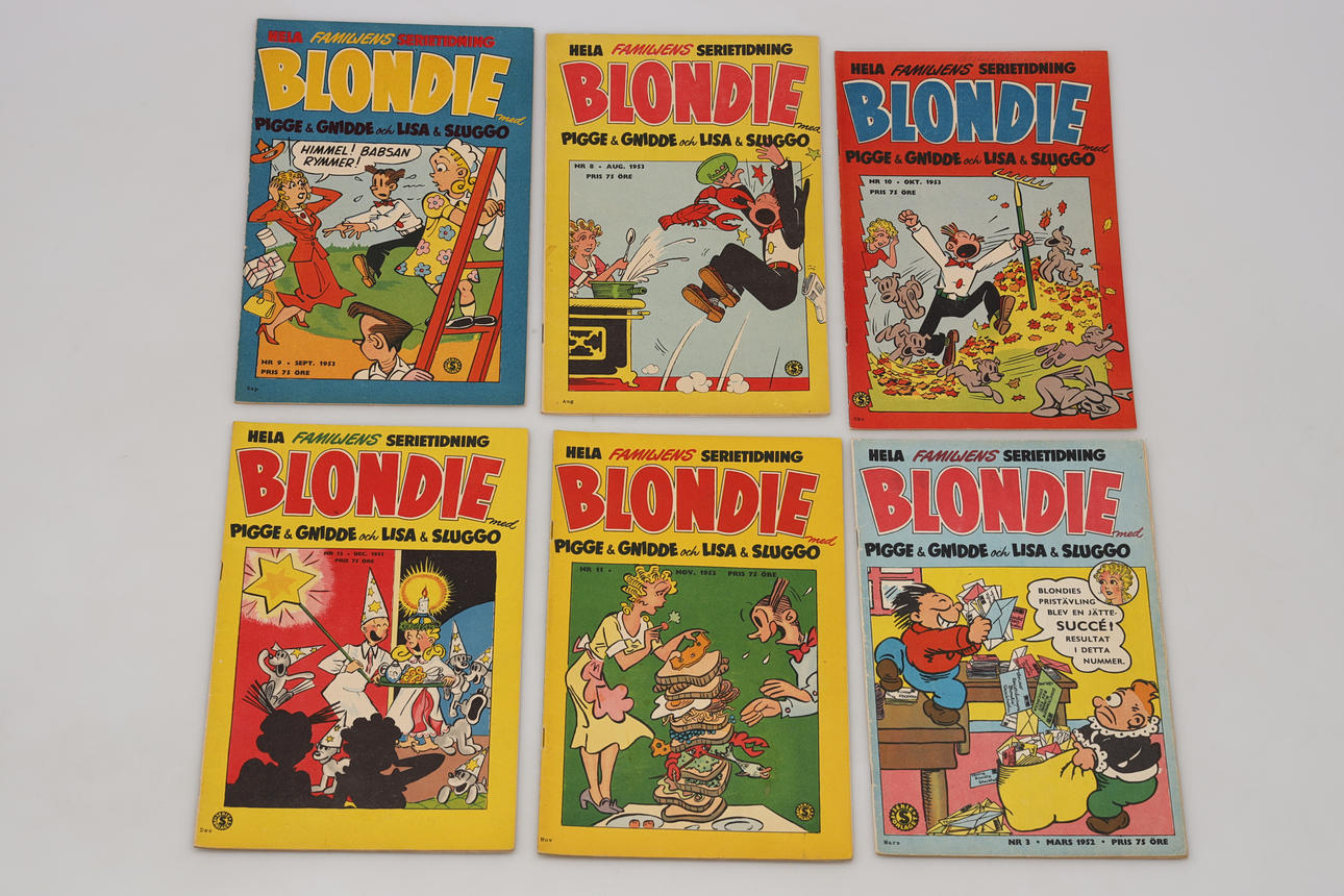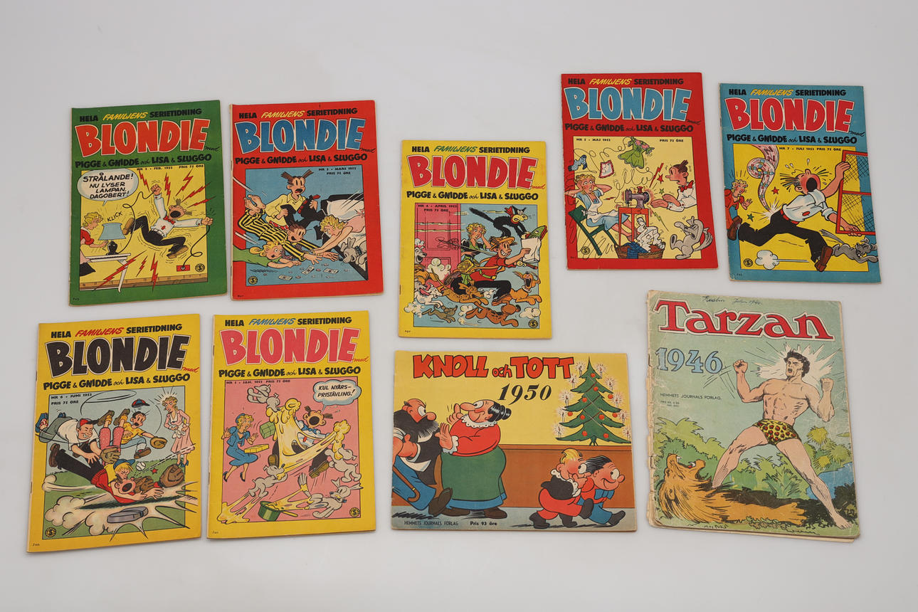 Collection consisting of; Tarzan, Christmas Album 1946 (GD); Knoll and Tott, Christmas album 1950 (VF); The Phantom, No. 12, 17 - 1954 (NM); Tarzan, No. 12 - 1954 (VF) Leather Patch and Robin, No. 9 - 1954 (NM) Lisa and Sluggo, Christmas Album 1953, 1962 (VF/NM); Blondie, No. 3 - 1952, 1-12 1953 (FN/VF).