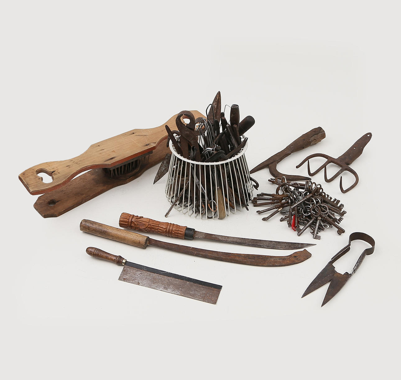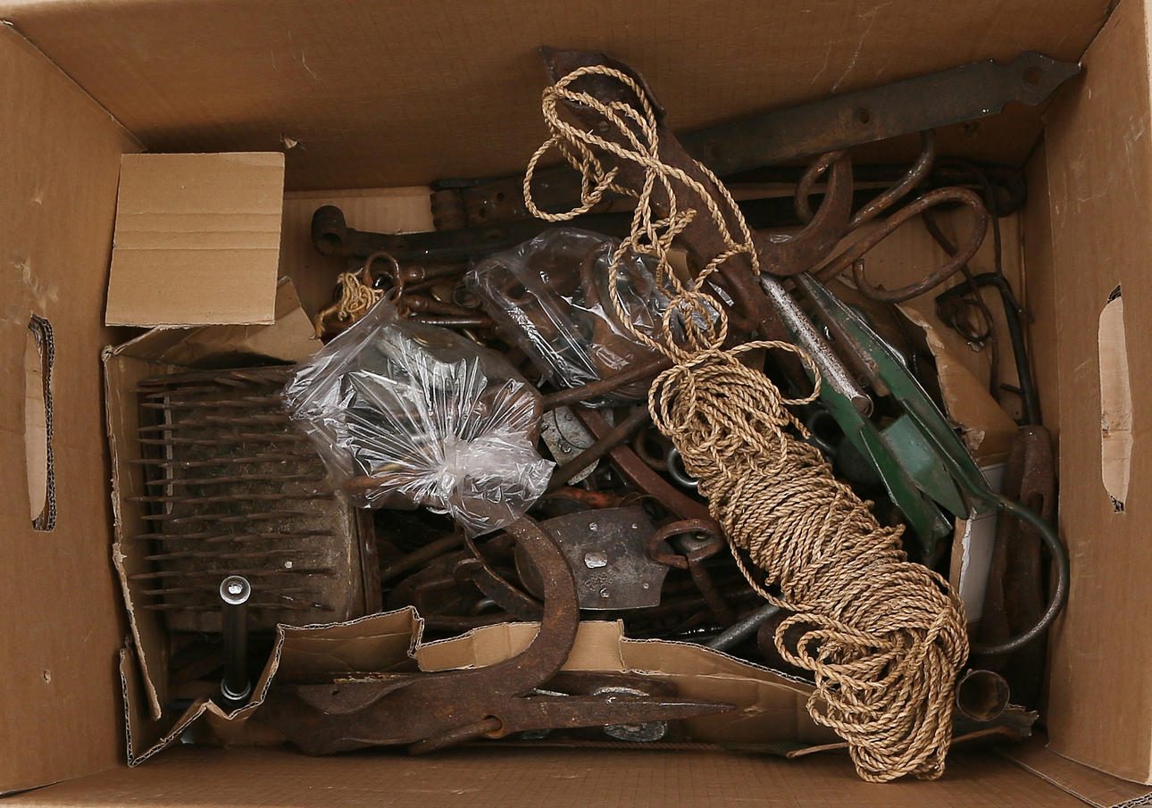 2370901. COMMON OBJECTS and more in a box, mostly metal, including many keys, 18/1900s.