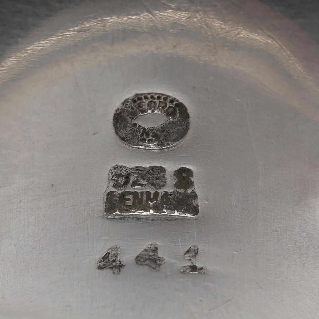 Stamped with model no. 441 Ring size approx. 16.15 / 52 Width approx. 3.3 - 30 mm, height approx. 18.6 mm Weight approx. 32 grams In original case.
