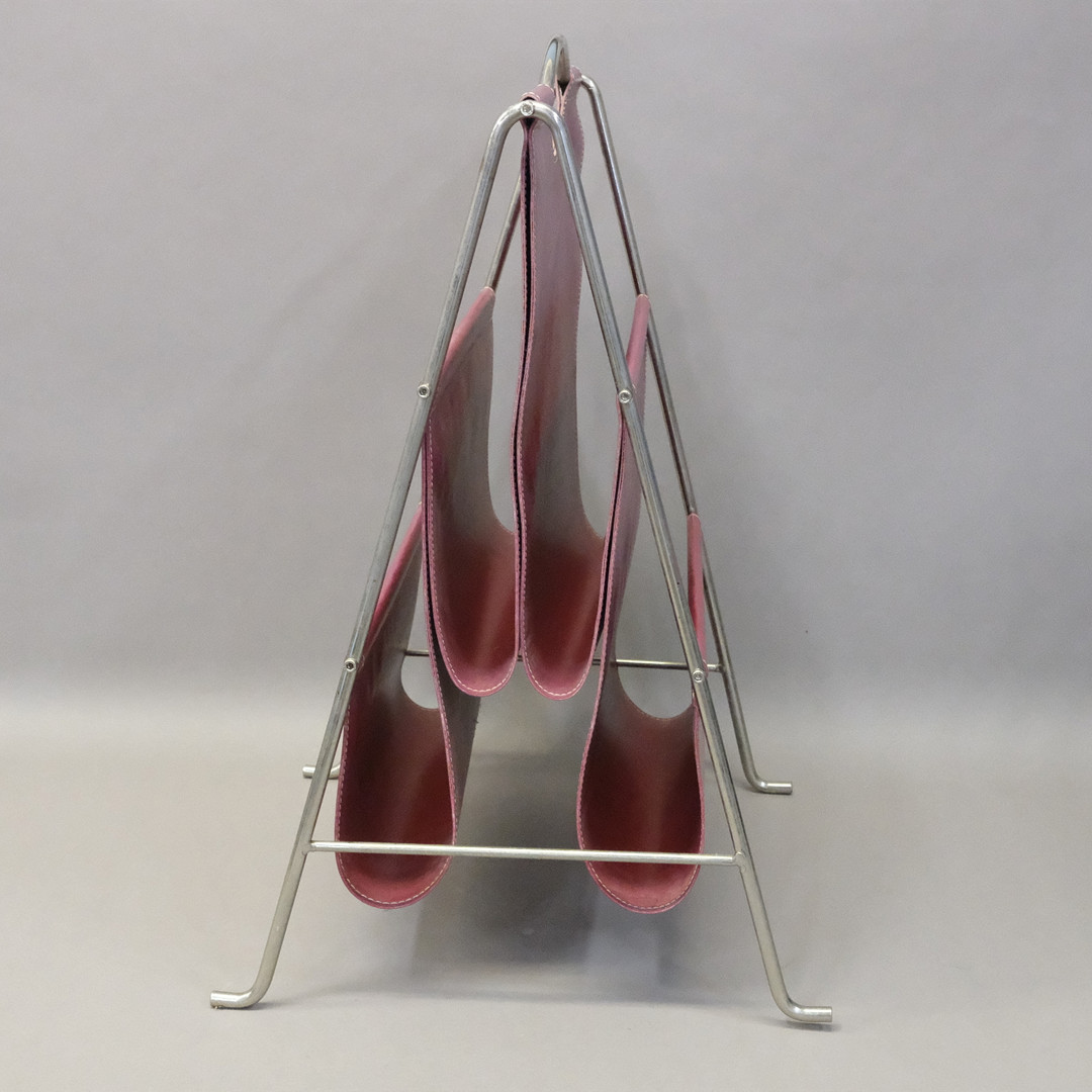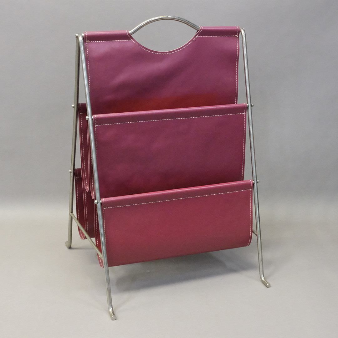 2374282. NEWSPAPER HOLDER, LEATHER AND CHROME.