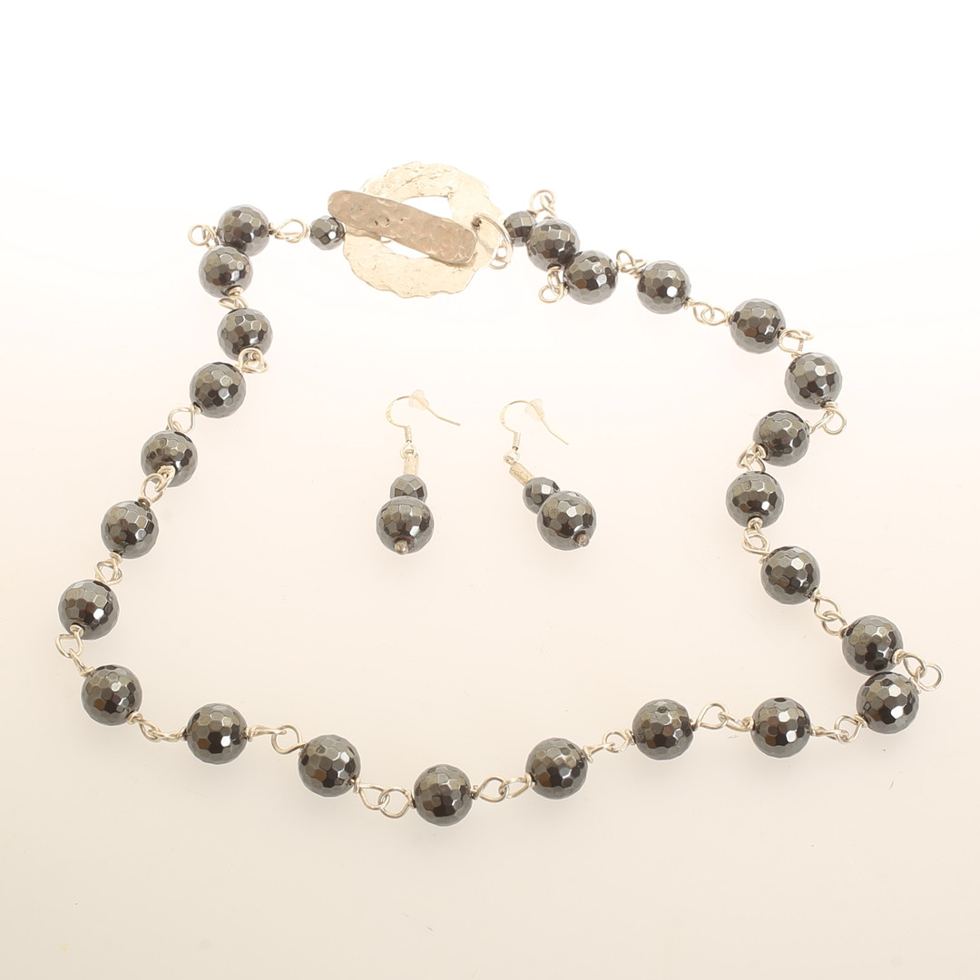 2376959. DECORATION, 2 parts, hematites and silver.