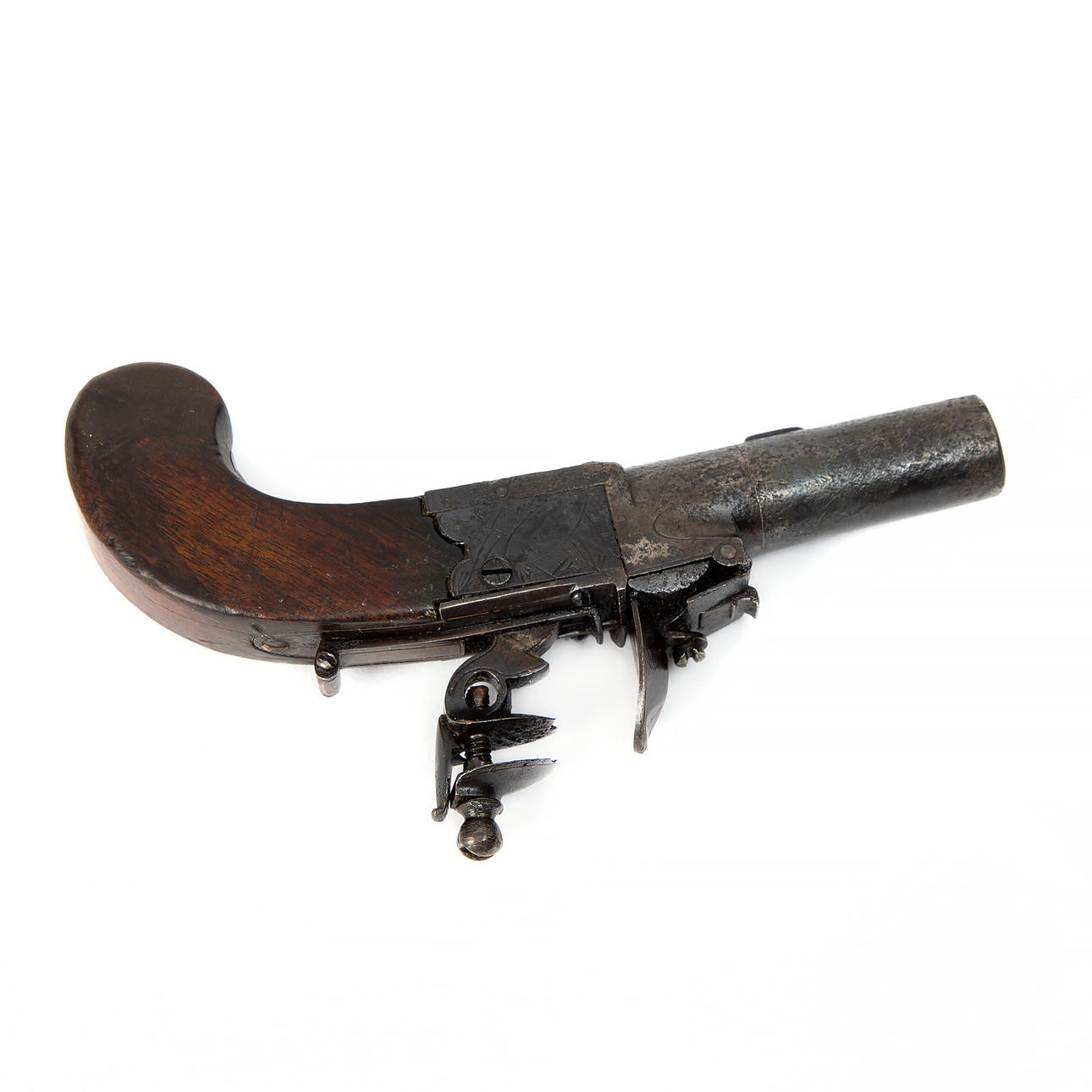 SK muff pistol 1780-1790. With unscrewable barrel for charging. Signed: Field Aylesbury.
