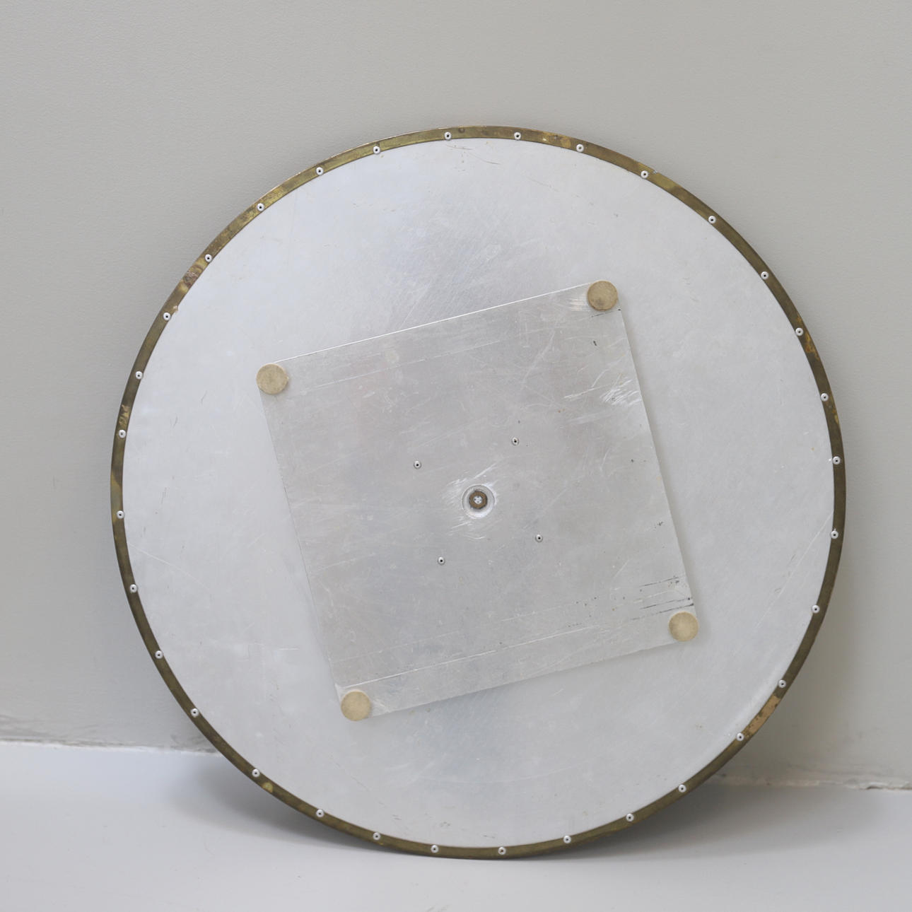 Rotatable table plateau with edge in brass. Motif depicting a dancing couple, vines and text "Si hon slänger handen tirter. White legs and red feet" from Bellman's Fredman's Epistle No. 3. Diameter approx. 60 cm.