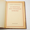 A story from Stockholm's archipelago. With 8 drawings and 4 color plates. Published by Strindbergsällskapet with introduction and commentary by Torsten Eklund. Stockholm, Bonniers, 1948 (band and bookplate as above, bibliophile edition of 300 numbered copies, of which this is number 143).
