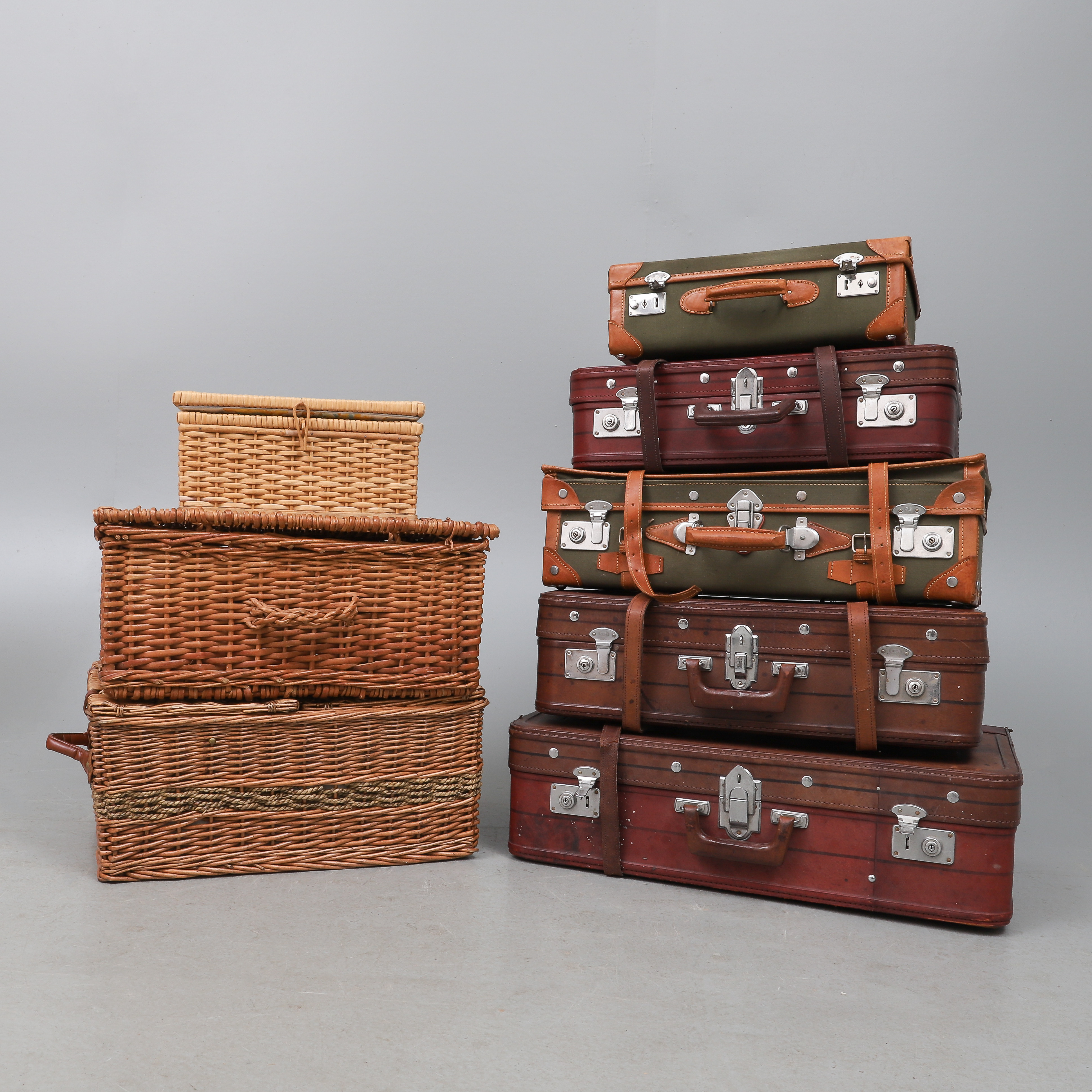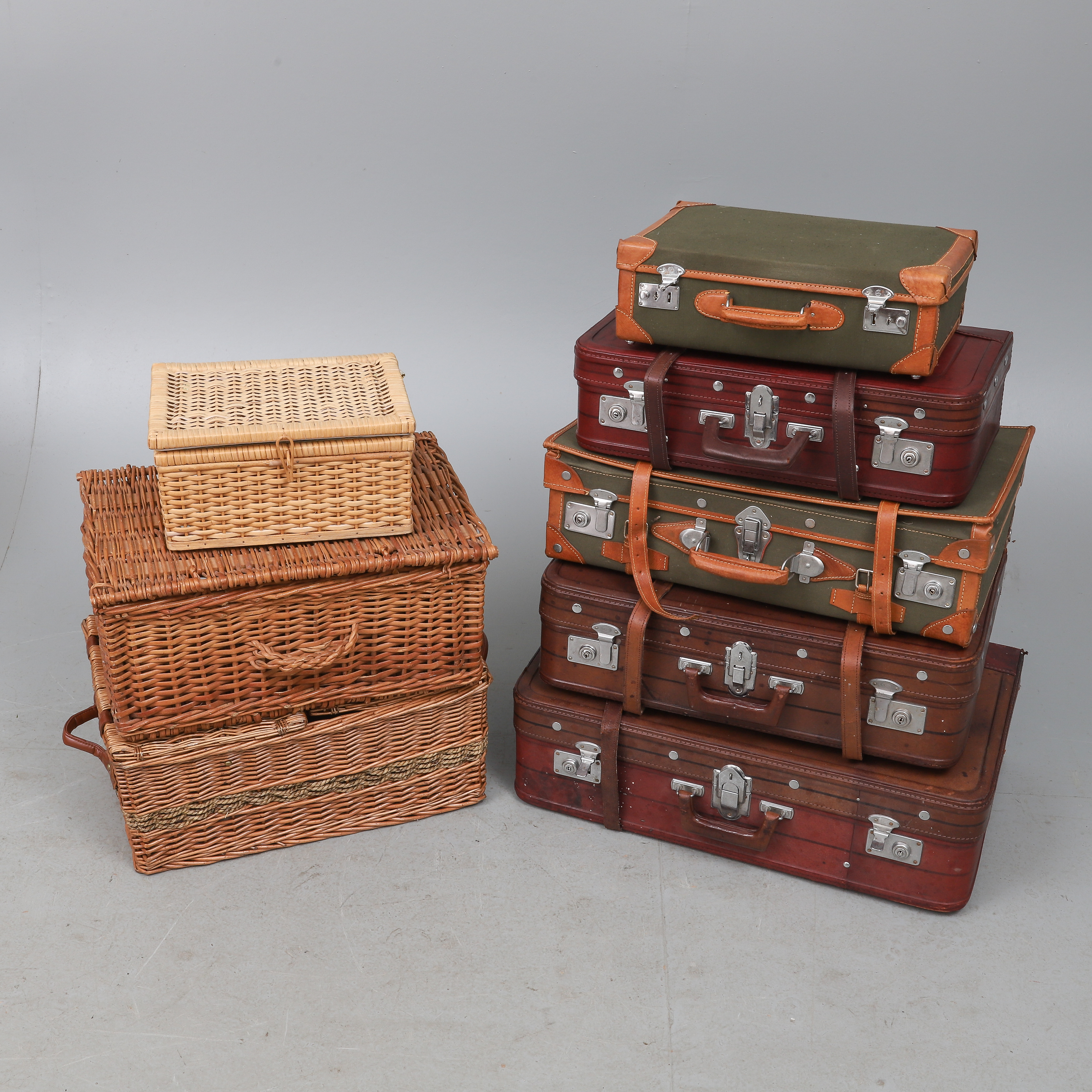 2386454. A MODERN GREEN CANVAS COVERED LEATHER MOUNTED SUITCASE.
