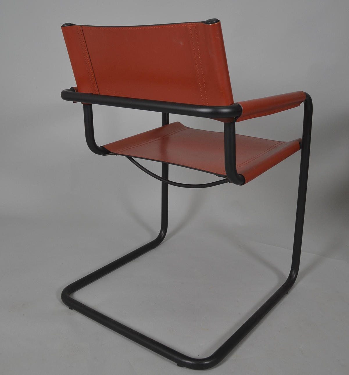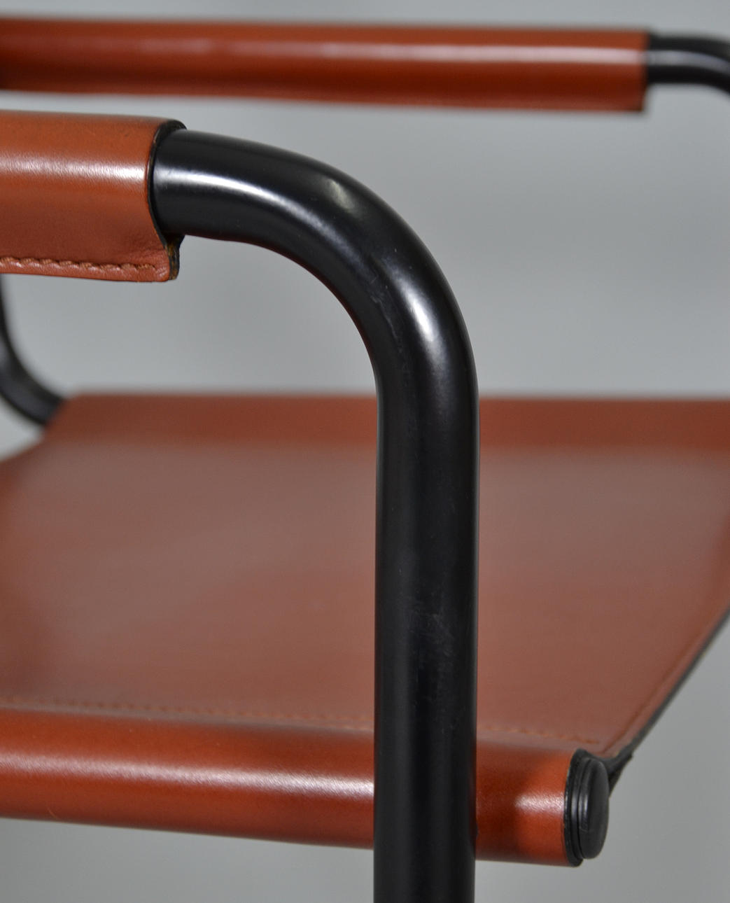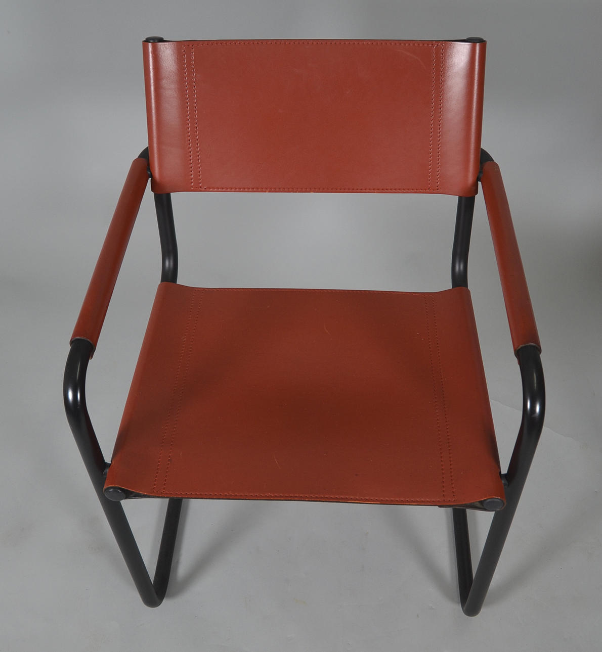 Design Matteo Grassi Manufacturer Linea Veam Metal frame painted black. Seat and back covered with thick red-brown core leather.