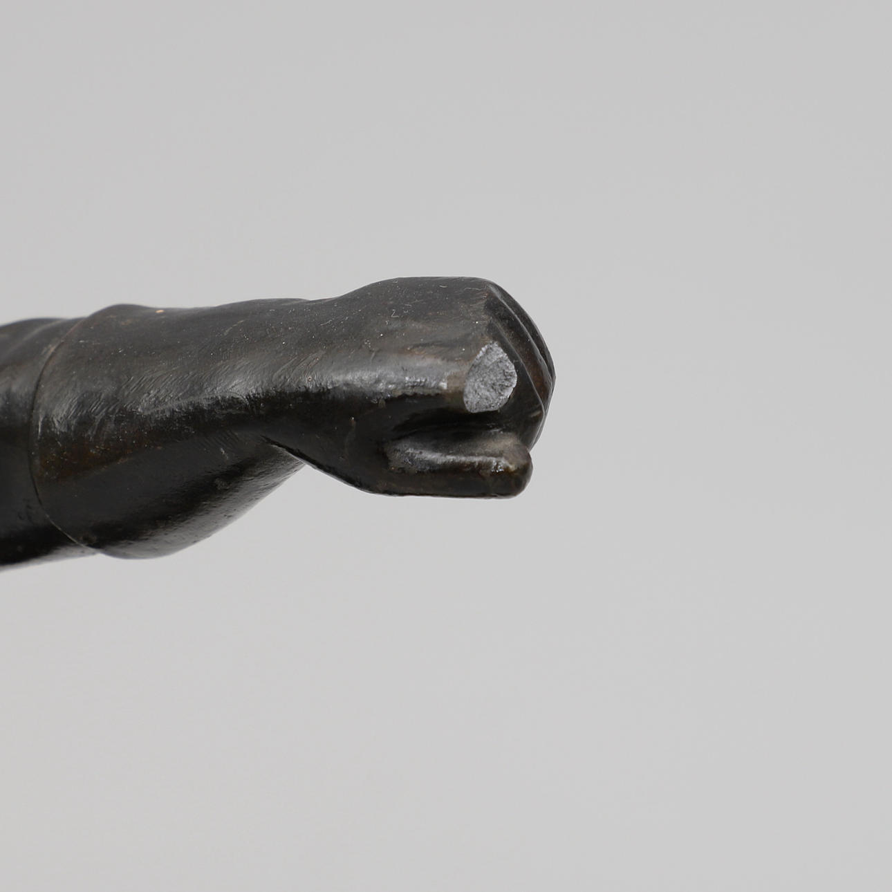 Repair in the waist and neck. Later sword blade and damaged saber mount. Wear, dirt. Index finger interrupted and included.