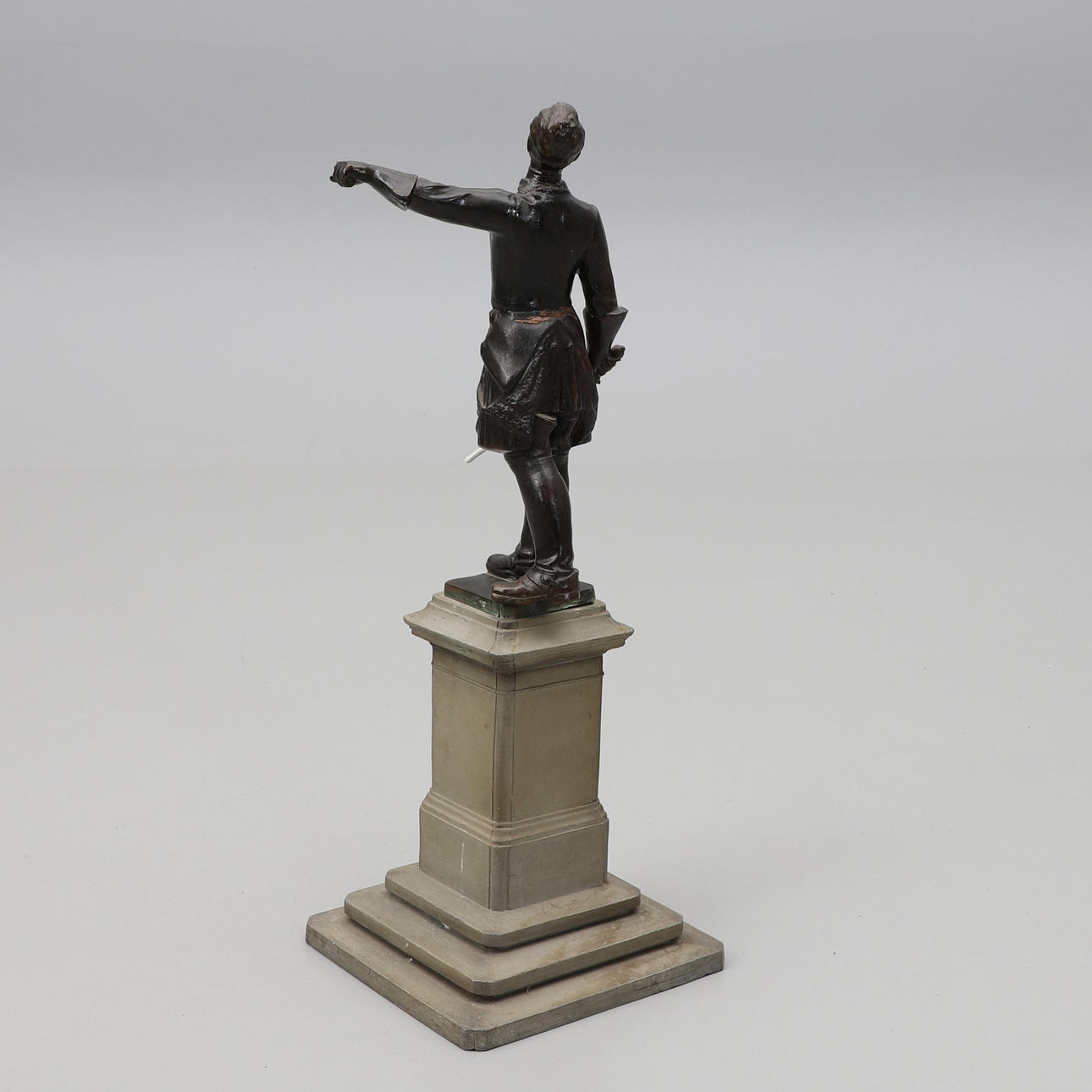 Bronze patinated metal on white metal pedestal. After original in Kungsträdgården, Stockholm. Height incl. fixed pedestal approx. 79 cm.