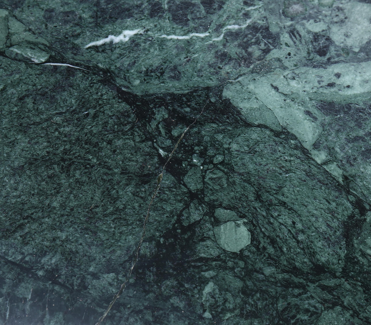 COFFEE TABLE, green stone slab, 1900s/2000s.