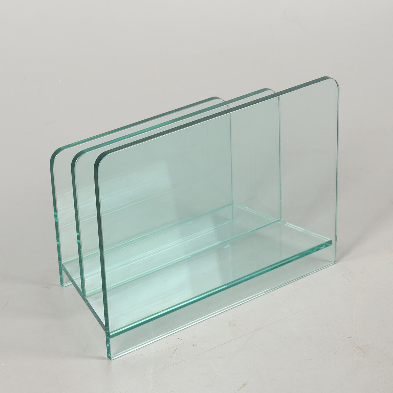2391183. A VINTAGE GLASS TWO-TIER MAGAZINE RACK.