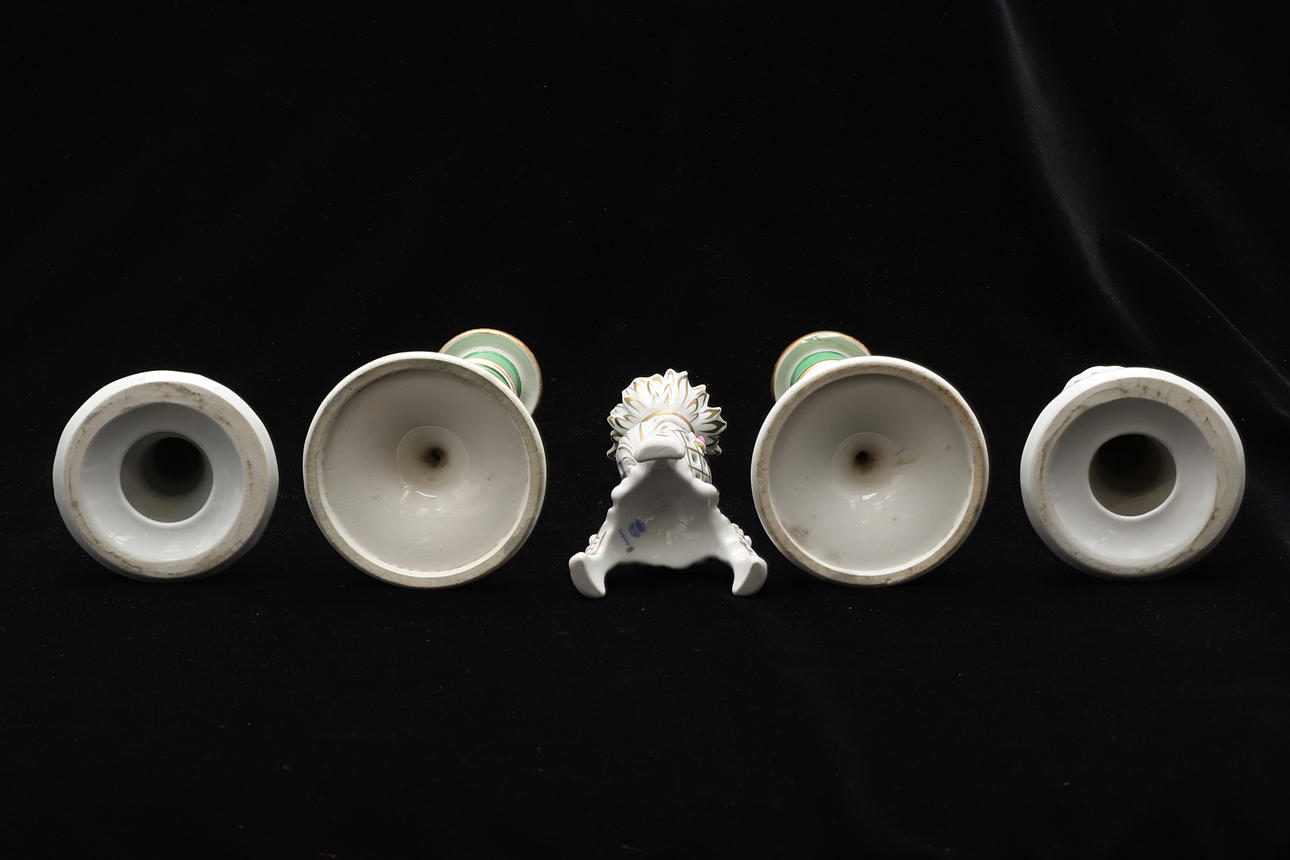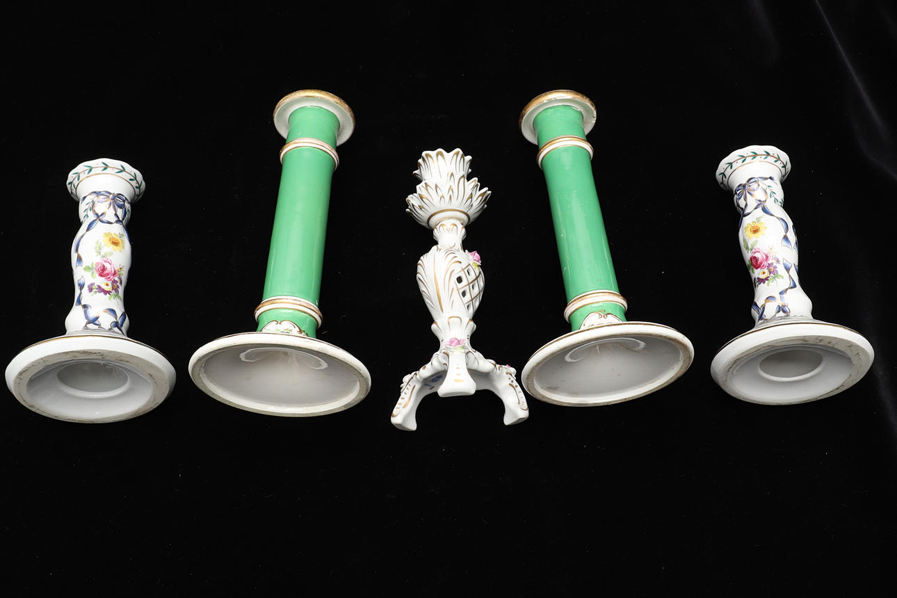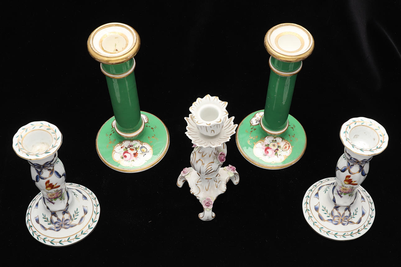 2393839. TWO PAIRS AND A SINGLE OF CERAMIC CANDLESTICK.