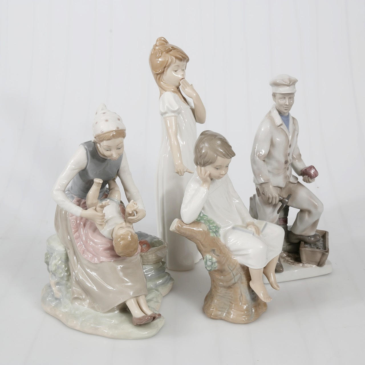 2399459. FIGURES, porcelain, 4 pieces, including Lladro and Nao.