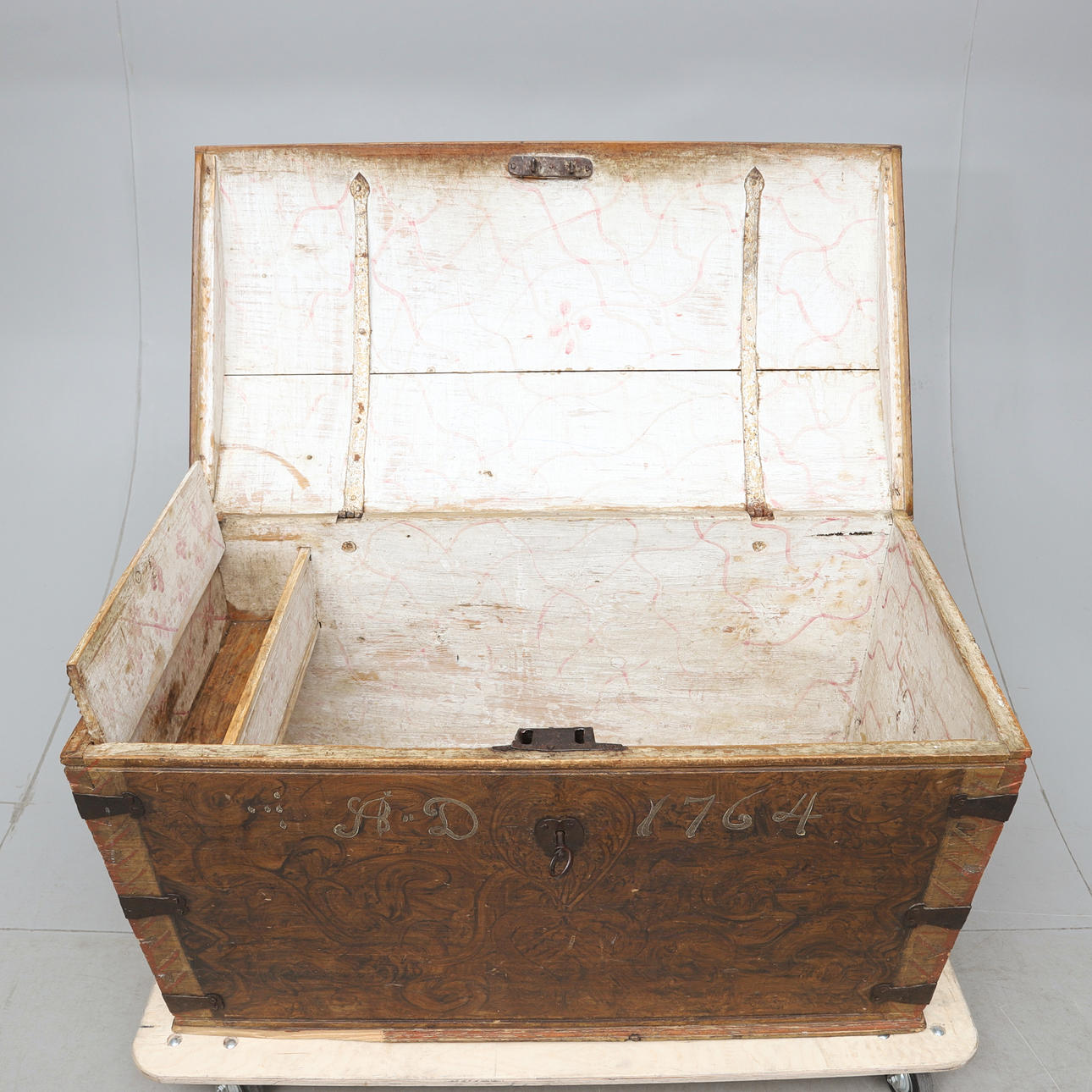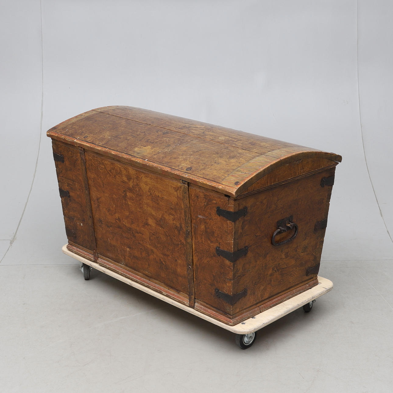 Painted oak. Gables with carrying handles. Fittings of iron. Length about 116. Width about 63. Height approx. 64 cm.
