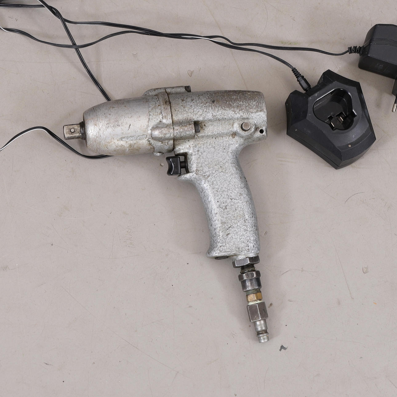 Angle grinder. (with battery + charger) Compressed air drill Atlas Copco.
