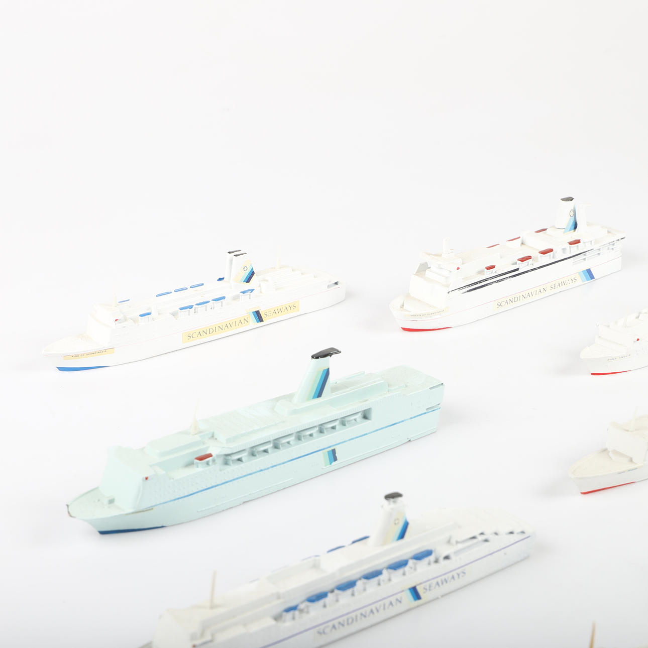 MODEL FERRIES, 8 pieces, metal, 1900s.