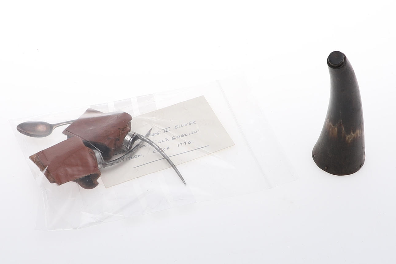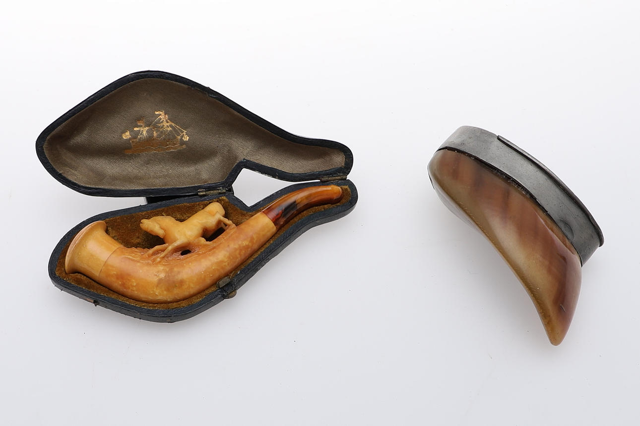 in various materials including wood, metal and papier mache, a meerschaum pipe, pair of cockfighting spurs and an 18th century snuff spoon (22).