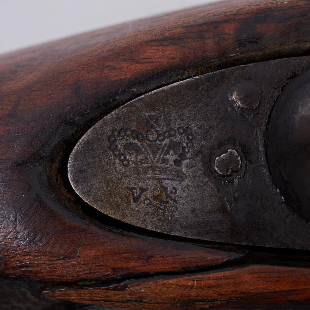 Age-related signs of wear and abrasion, mechanism partially scarred, ramrod missing, barrel slightly loose at the front.