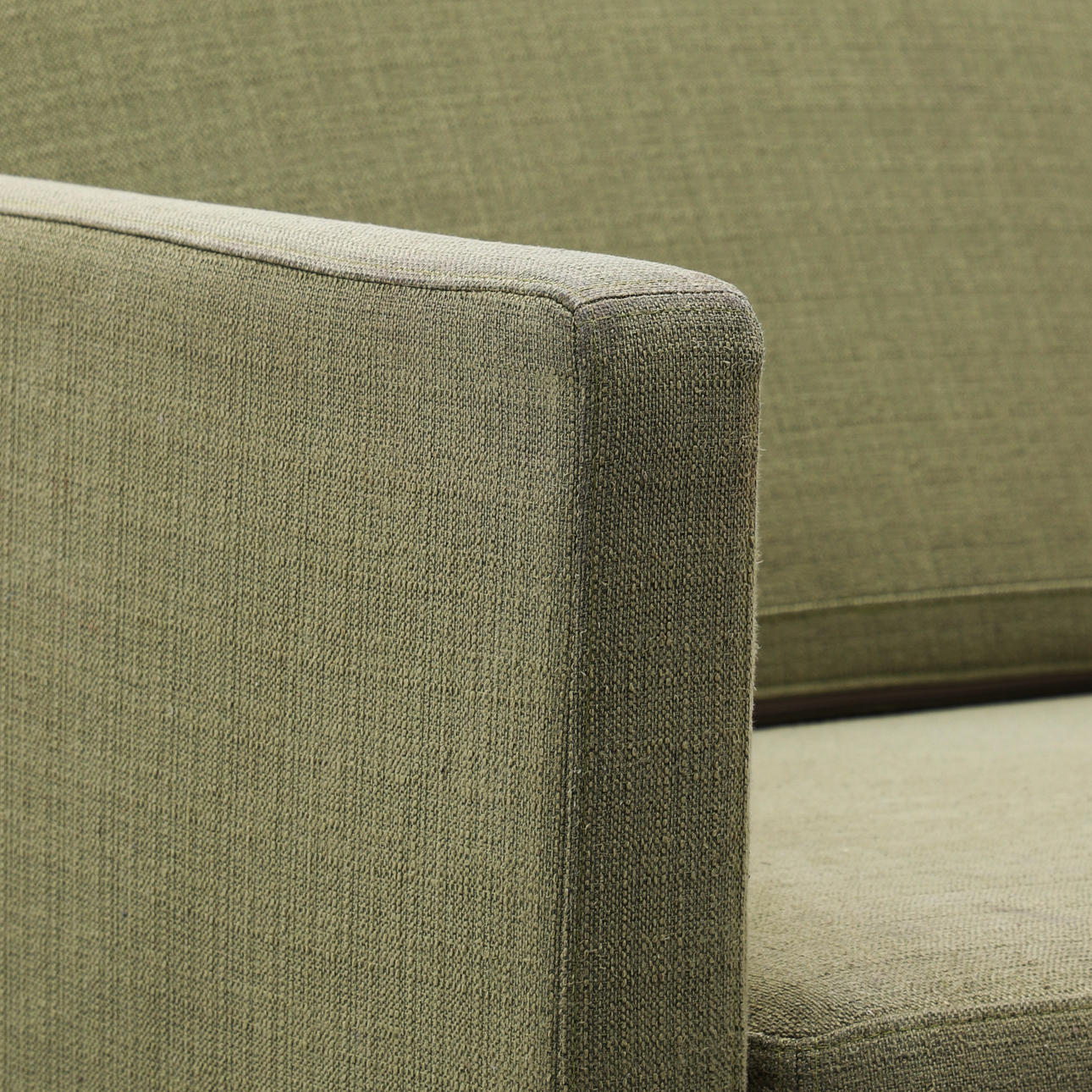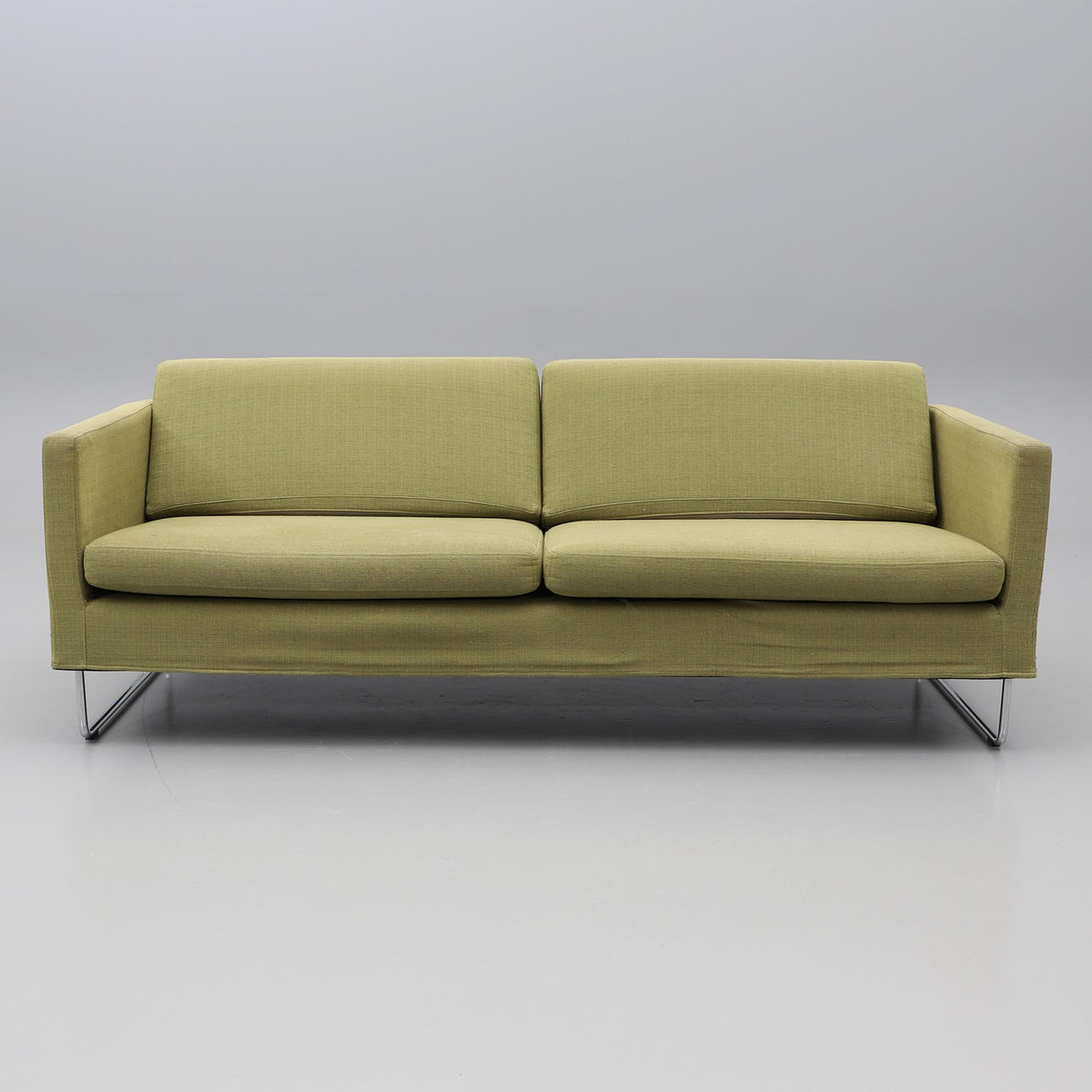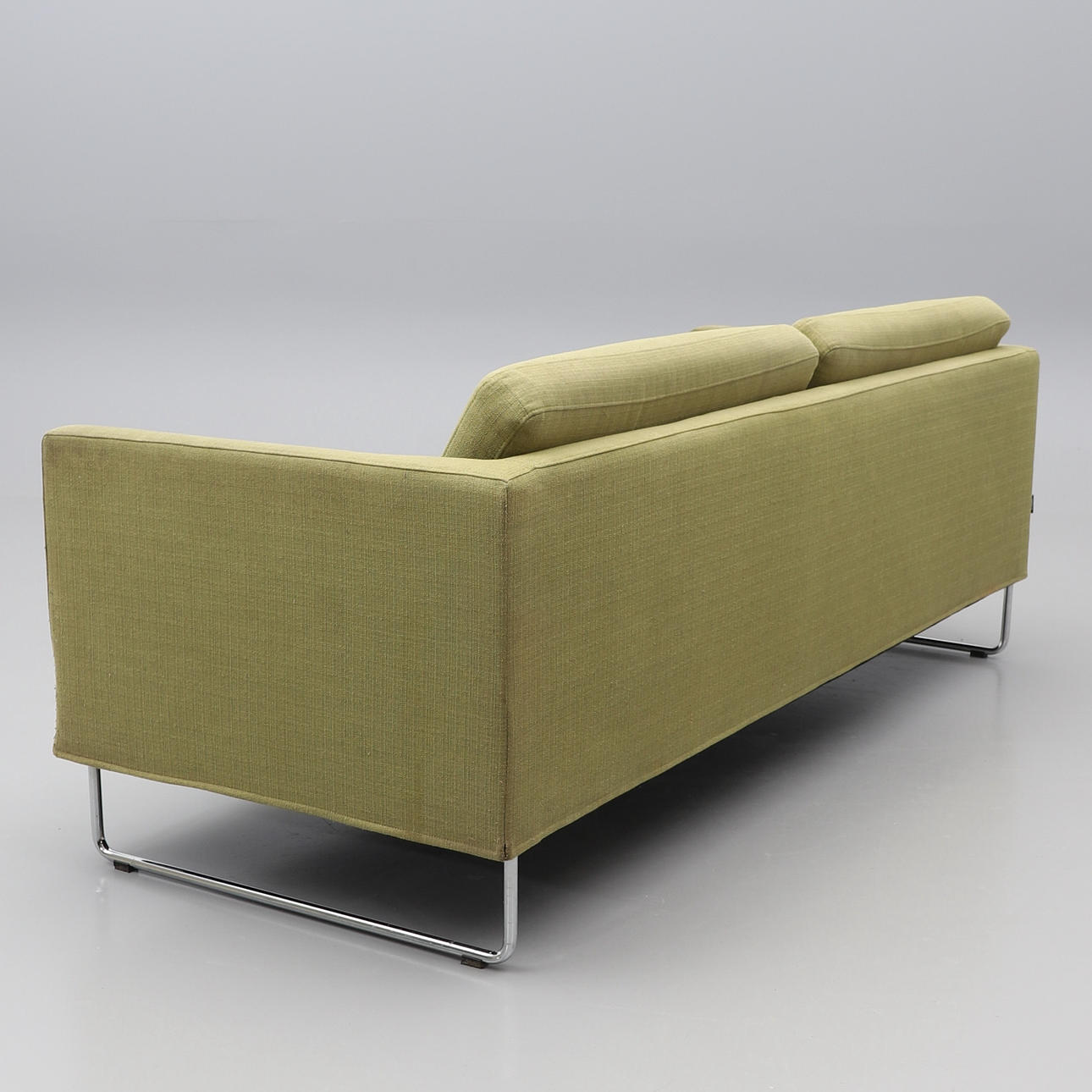 Loose padded cushions. Dressed in green fabric. Chromed legs. Length 210, depth 80, seat height approx. 45 cm.