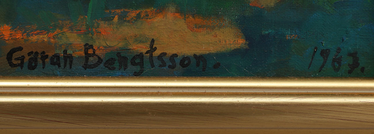 En regnig och långsam vardagseftermiddag i januari 2019 klev han in i våra lokaler och undrade lite försynt om det möjligtvis kanske förhoppningsvis gick att sälja lite egengjord konst på auktion. Lång, smal, gråhårig, darrig i rösten och med snälla ögon. Vi hade aldrig hört talas om denne konstnär, konstigt nog då det sedan visade sig att han var lite av en lokal kändis, så lite tveksamt undrade vi vad han var konstnär inom. Ur sin axelremsväska tog han då fram en bunt med foton. Och blixten slog ner. Vi var förälskade! I hans färggranna målningar med mängder av substans. I Göran Bengtsson själv, med sin godmodiga och försynta uppsyn, glimten i ögat och en ödmjukhet över att vilja få ut sin konst “för det började bli lite mycket i gömmorna”.