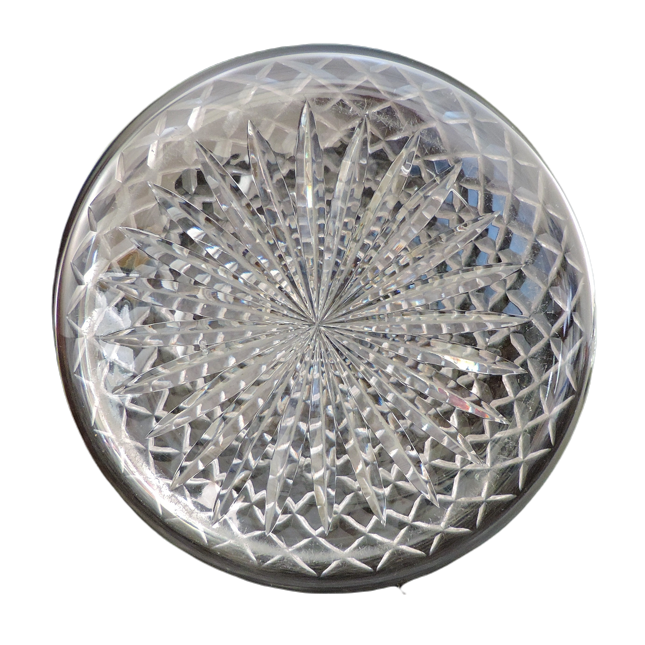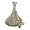 This is a Ship's Decanter with a wide base made from heavy crystal. The decanter is diamond cut to its lower half with the diamonds graduating from the base, getting smaller towards the centre. The base of the decanter is star cut and the stopper is also diamond cut with star fluting to the top and looks original to the decanter, being a good fit in the neck. Measurements: 26cm high and 18cm base diameter.