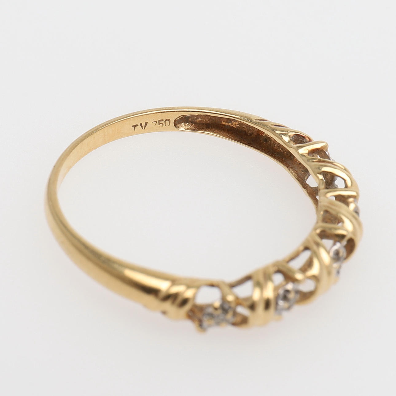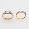 18k gold: One with cultured pearl and small diamonds, Swedish hallmark, size 17 1/2 and the other with five small diamats, size 16 1/2. Total weight 5.6 grams.