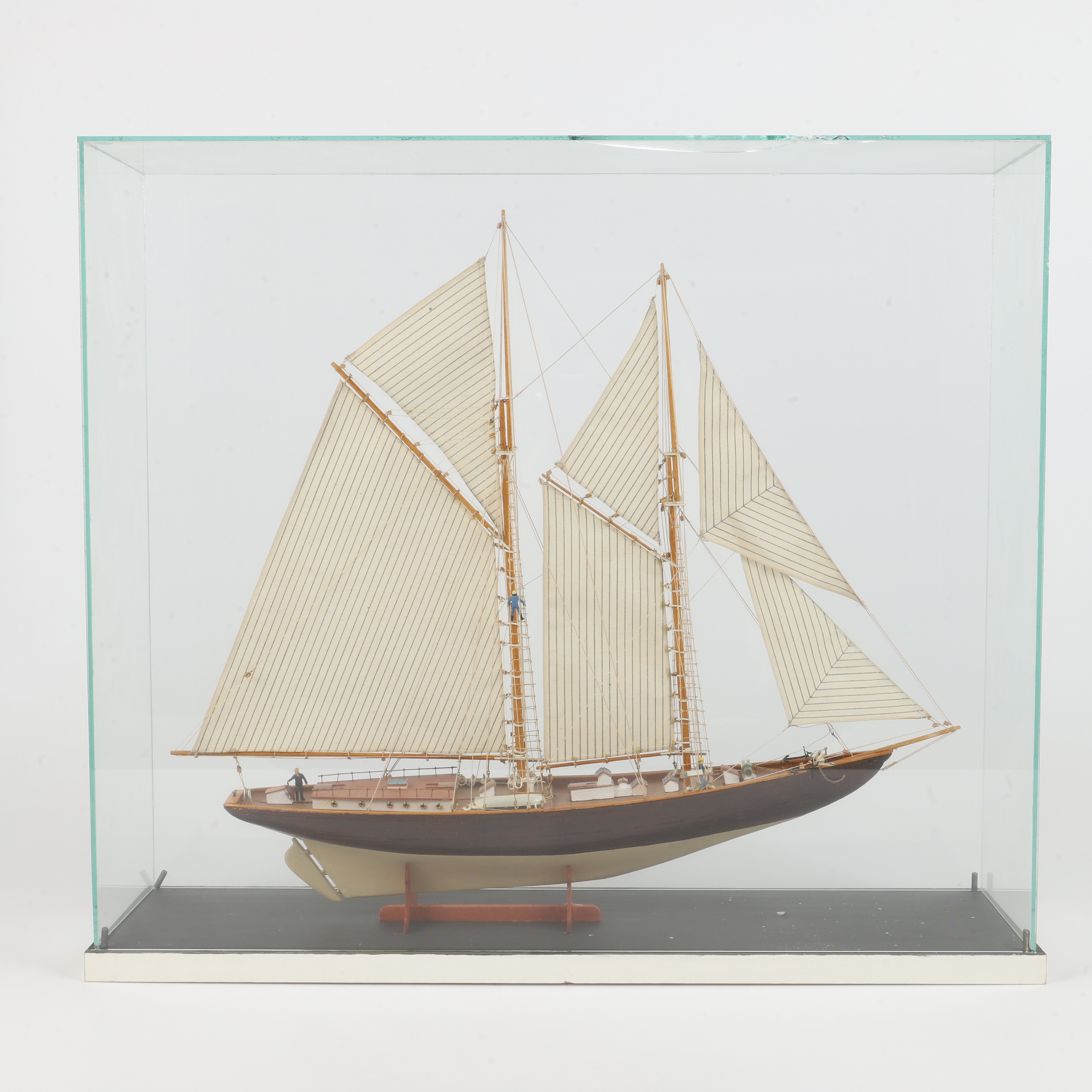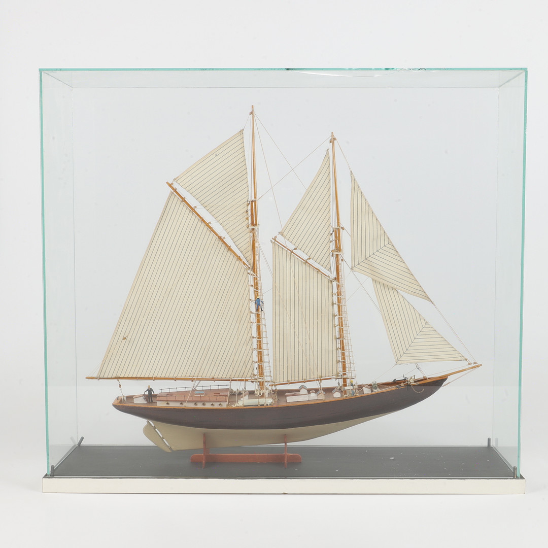 2410280. MODEL BOAT IN GLASS DISPLAY.