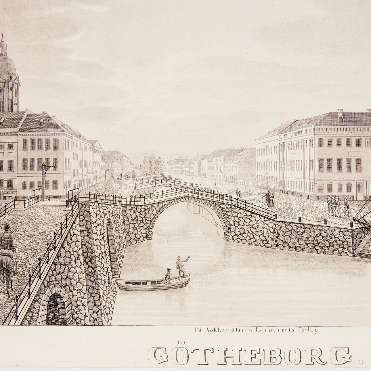 GOTHENBURG (3). 3 graphic sheets, i.a. Gothebourg, ville forte, port de mer sur l'ocean de la province de Westro Gotland (Paris, ca. 1695). Copper engraving, partly hand-coloured, 230x290 mm. (From Nicholas de Fer, Les Forces d l'Europe); Gothenburg, lithography (Gumperts publishing house, after Johan Leonard Björkfeldt 1815-1848), approx. 250x345 mm.