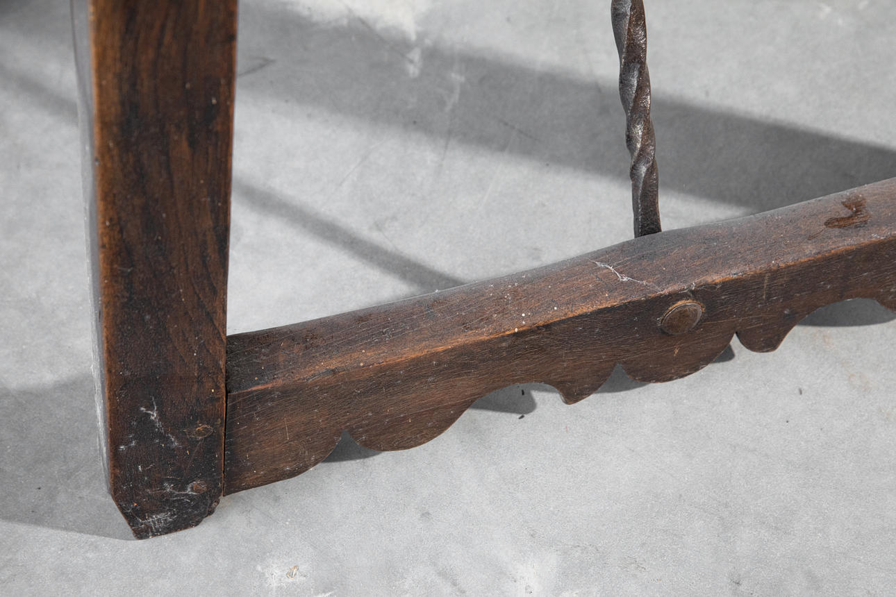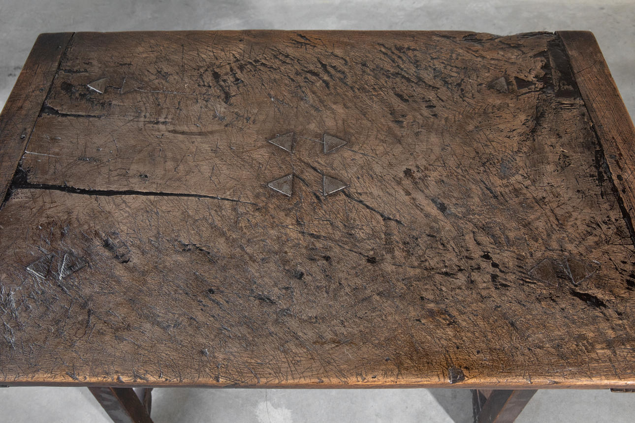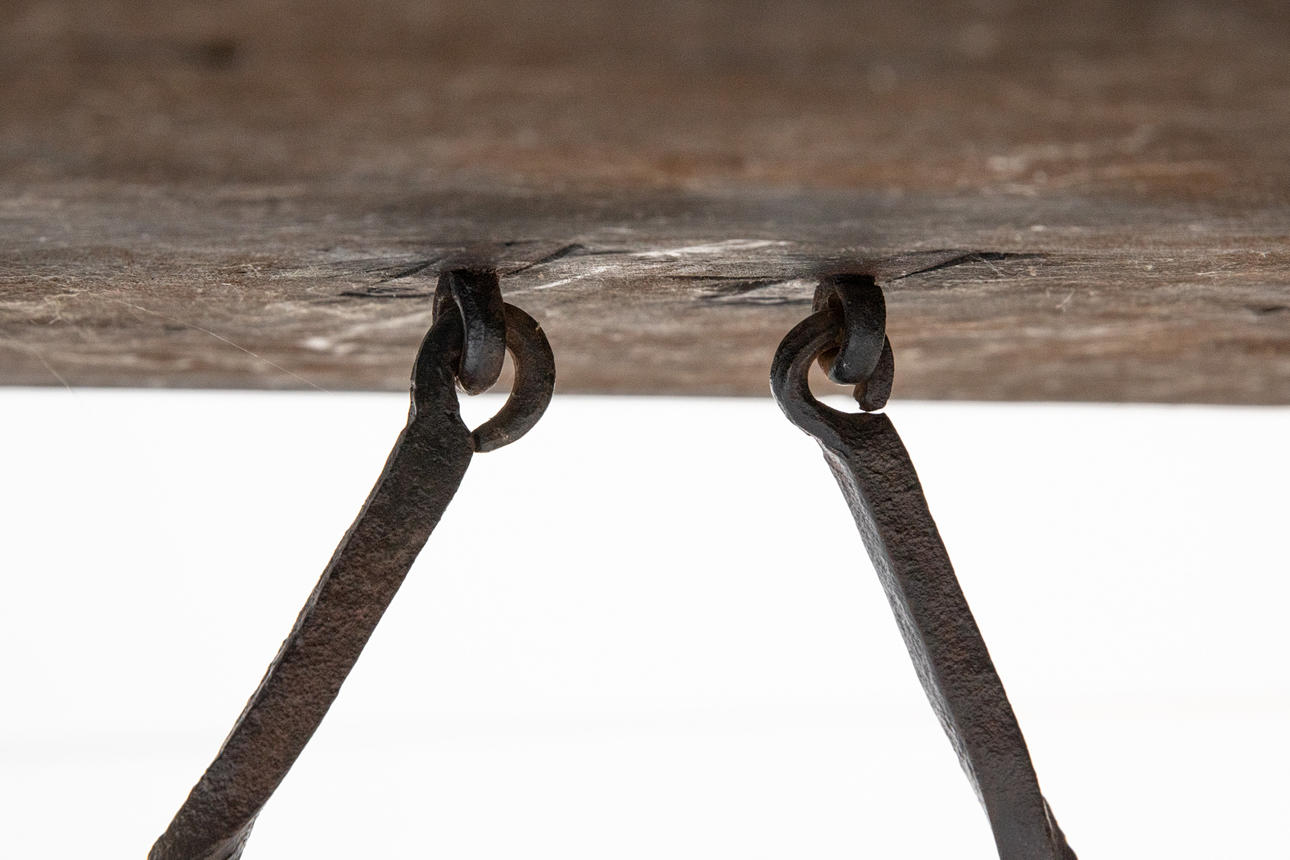 2415858. Oak table, c. 1780, with iron inserts (pyramid) (81-26).