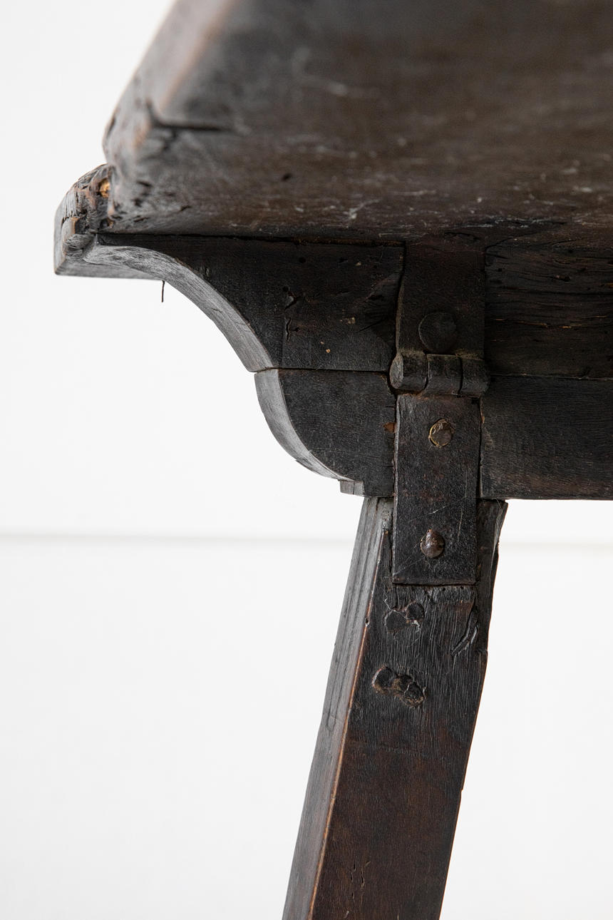 Oak table, c. 1780, with iron inserts (pyramid) (81-26).