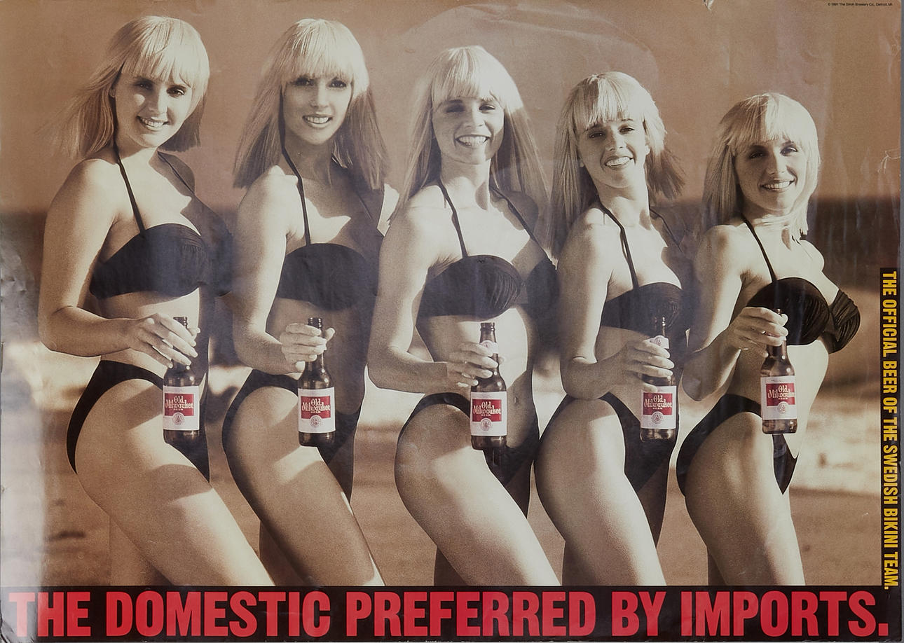 1. "Swedish Bikini Team, Old Milwaukee 1991. picture also on the back, The Stroh Brewery, Detroit", approx. 76x56 cm (2 pcs, also picture on the back) 2. "TASTE THE ADVENTURE Steinlager - New Zealand's Finest Beer, 89x61 cm.