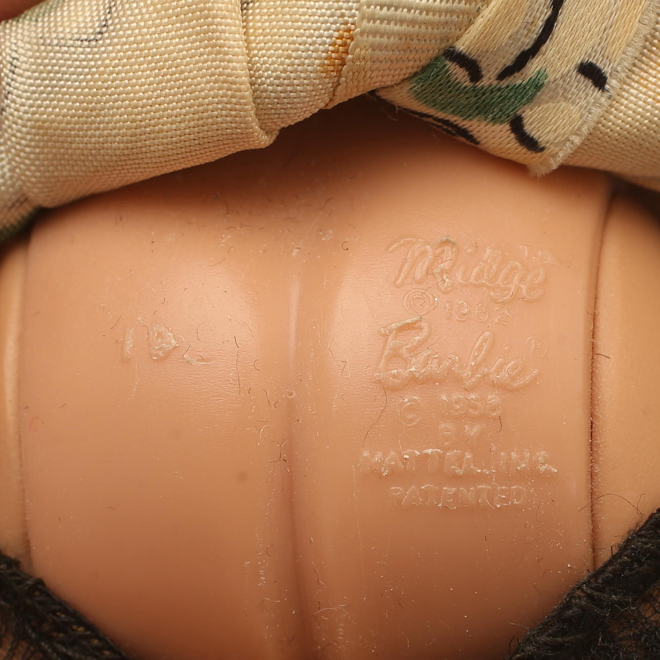 Normal wear and tear. Discoloration in one ear. Red coat with discoloration on the inside.