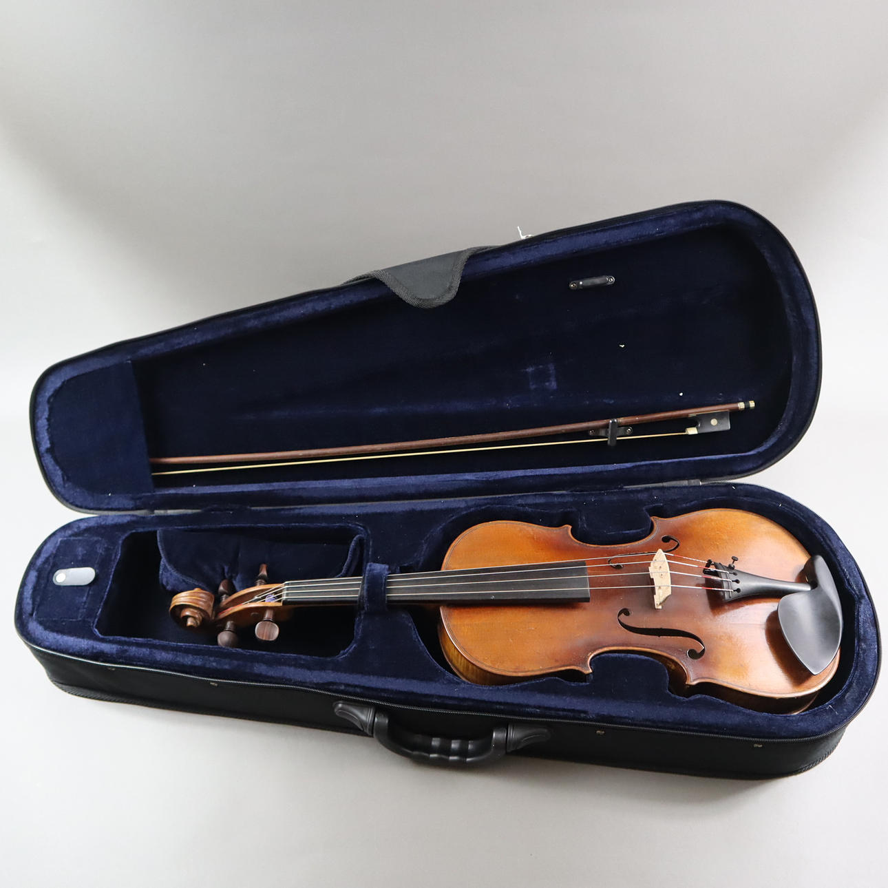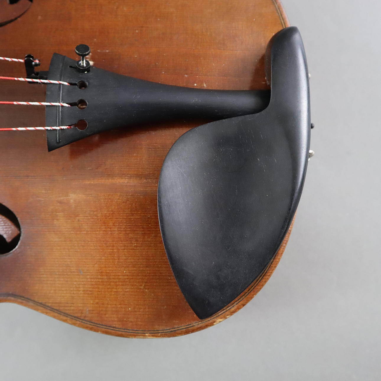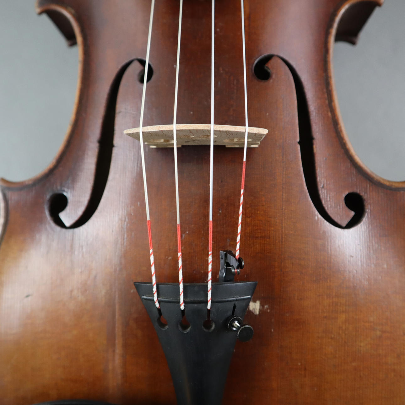 inscribed "Luigi Fabris fecit Venezia l'anno 1883" on the printed facsimile label, two-piece back made of flamed maple with curvature, sides and scroll made of maple, tailpiece, fingerboard, chin piece and pegs made of ebony, total length approx. 66.5 cm, body length 39.5 cm, in case with bow, L. approx. 75.2 cm, weight approx. 59g.