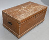 with hinged top, iron side carrying handles, on a plinth base and castors, 109cm wide x 63.5cm deep x 50cm high