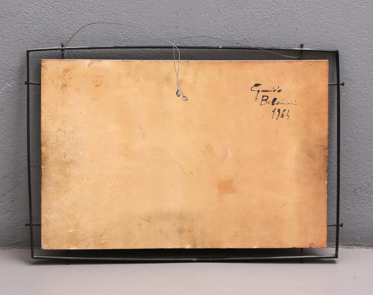 OIDENTIFIERAD KONSTNÄR. Wall relief, figures, stoneware, signed Guido Bolilini or Bocilini, dated 1984.