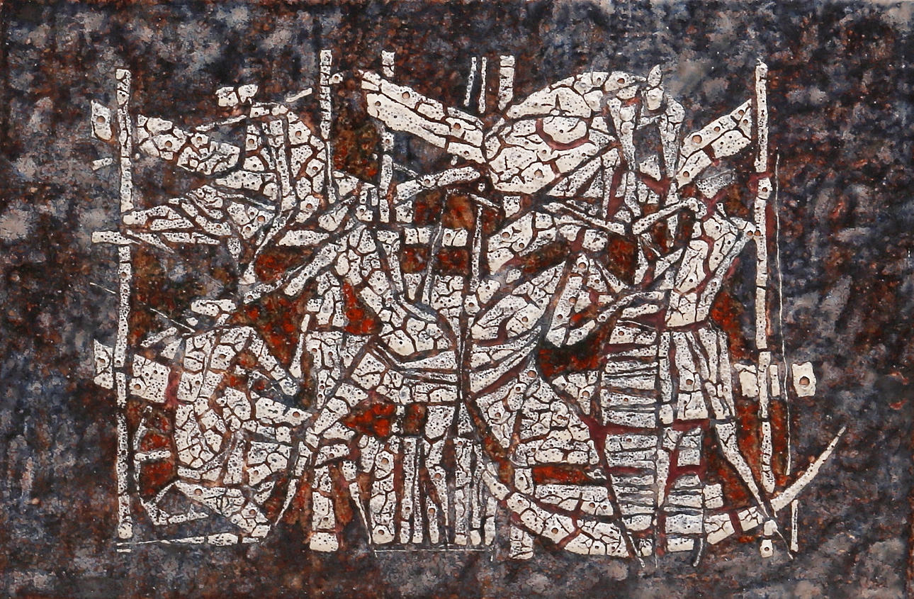 2423391. OIDENTIFIERAD KONSTNÄR. Wall relief, figures, stoneware, signed Guido Bolilini or Bocilini, dated 1984.